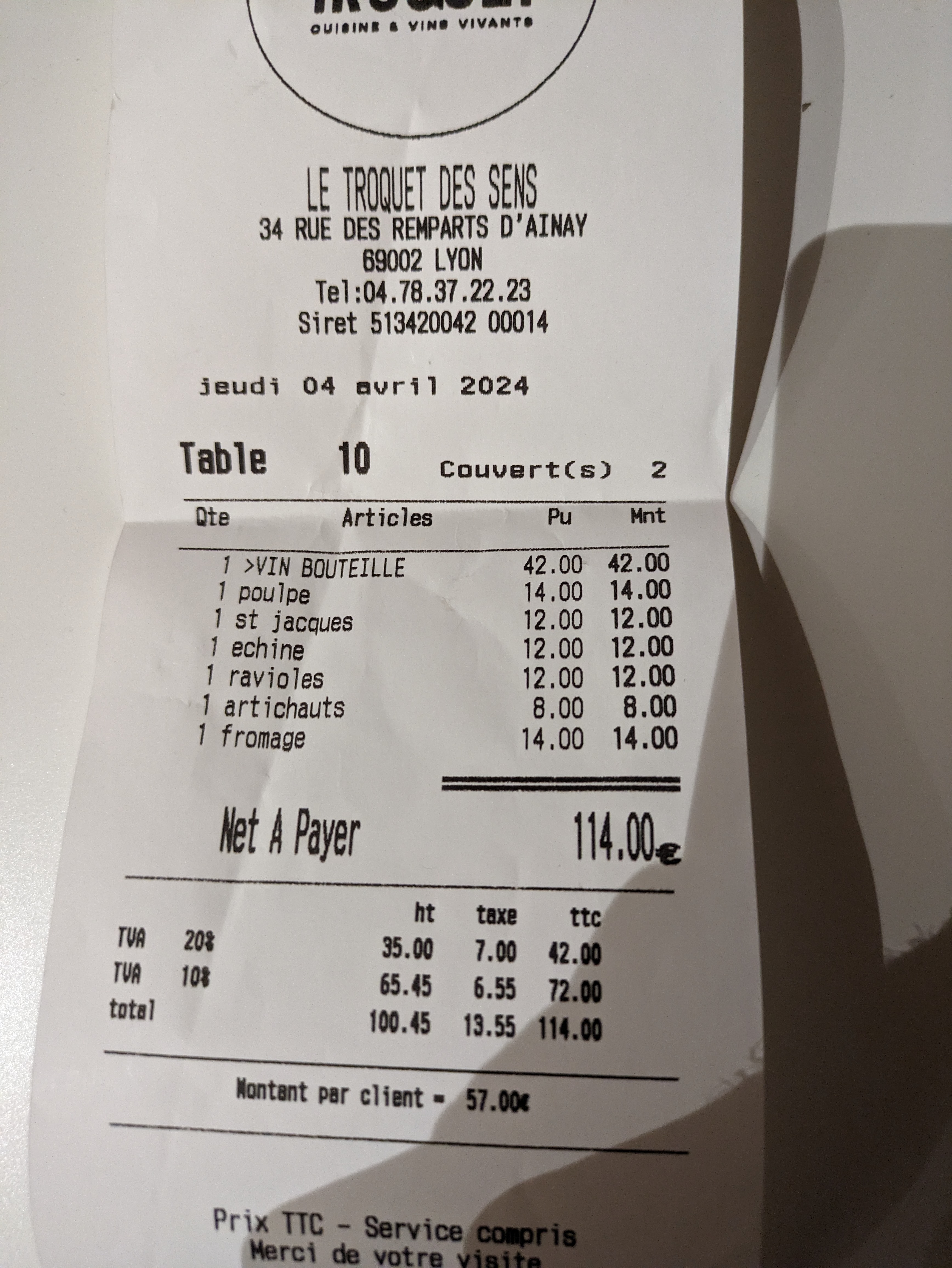 Super plats, tres bons vins. Dommage de se faire avoir sur la note a la fin en rajoutant plusieurs plats non commandés & en jouant la mauvaise foi 😡