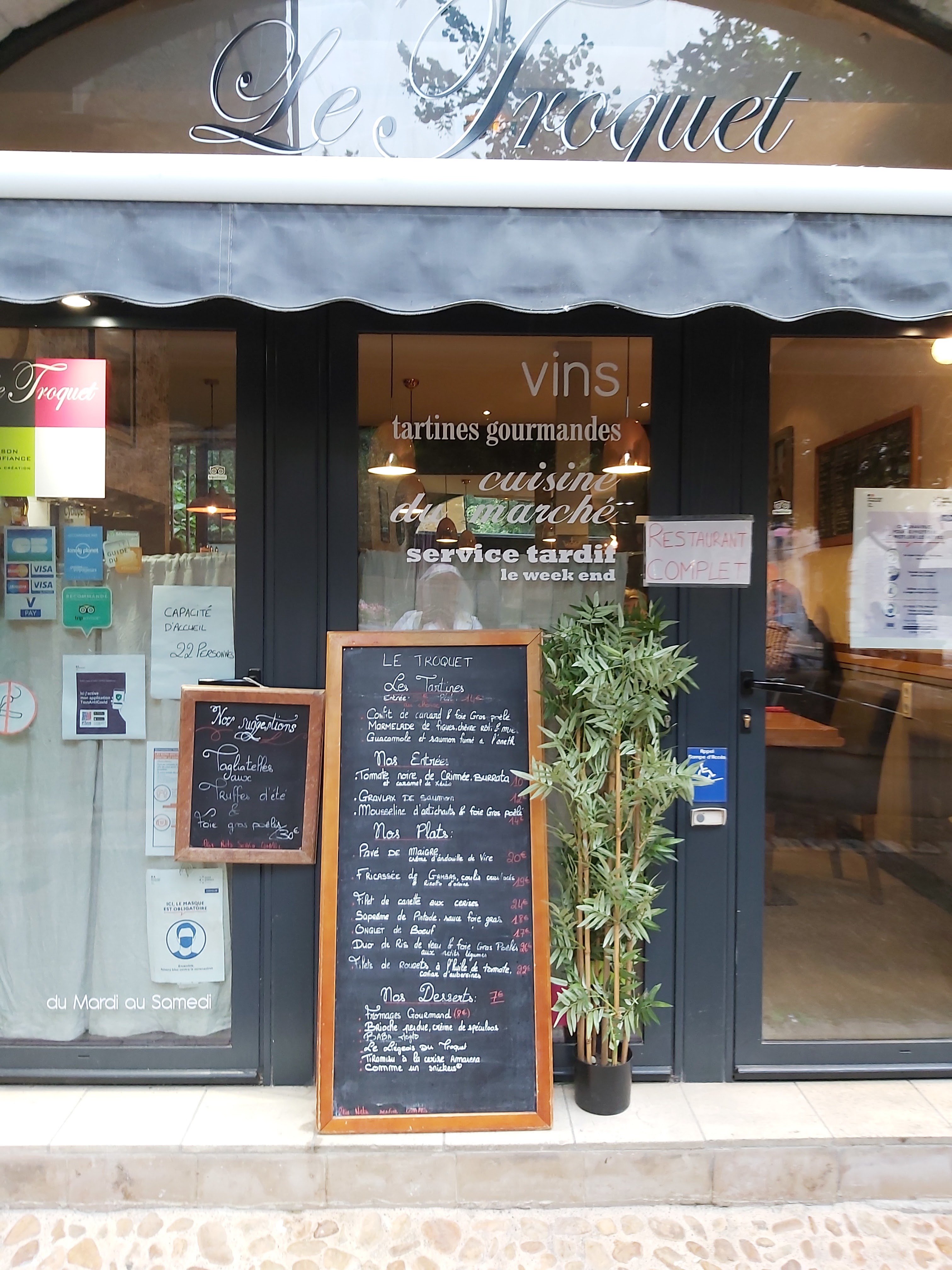 Etre venu 2 fois sans réservation dans ce restaurant - on ne sert pas - La serveuse ou la patronne n'a cherché à aucun moment à nous retenir trop préoccupée par la quelque dizaine de clients assis sous les tilleuls. Pourtant les quelques tables disponible à l'intérieur du restaurant nous tendaient les bras - Non c'est non - Heureusement que le restaurant d'en face n'a pas cette caractéristique. Ca va être compliqué au Troquet d'exister dans le temps. Courage pas sur que ça suffise.