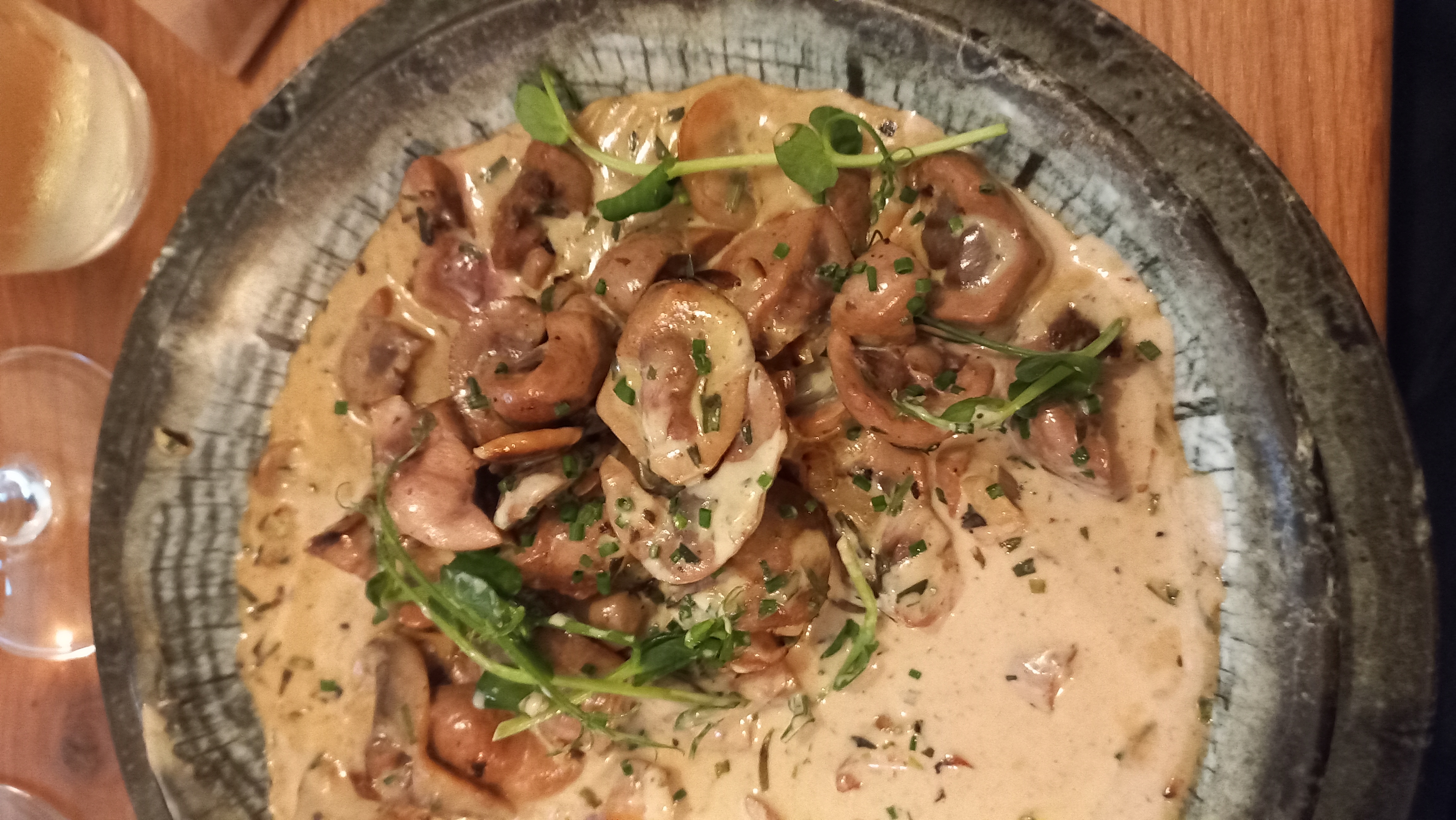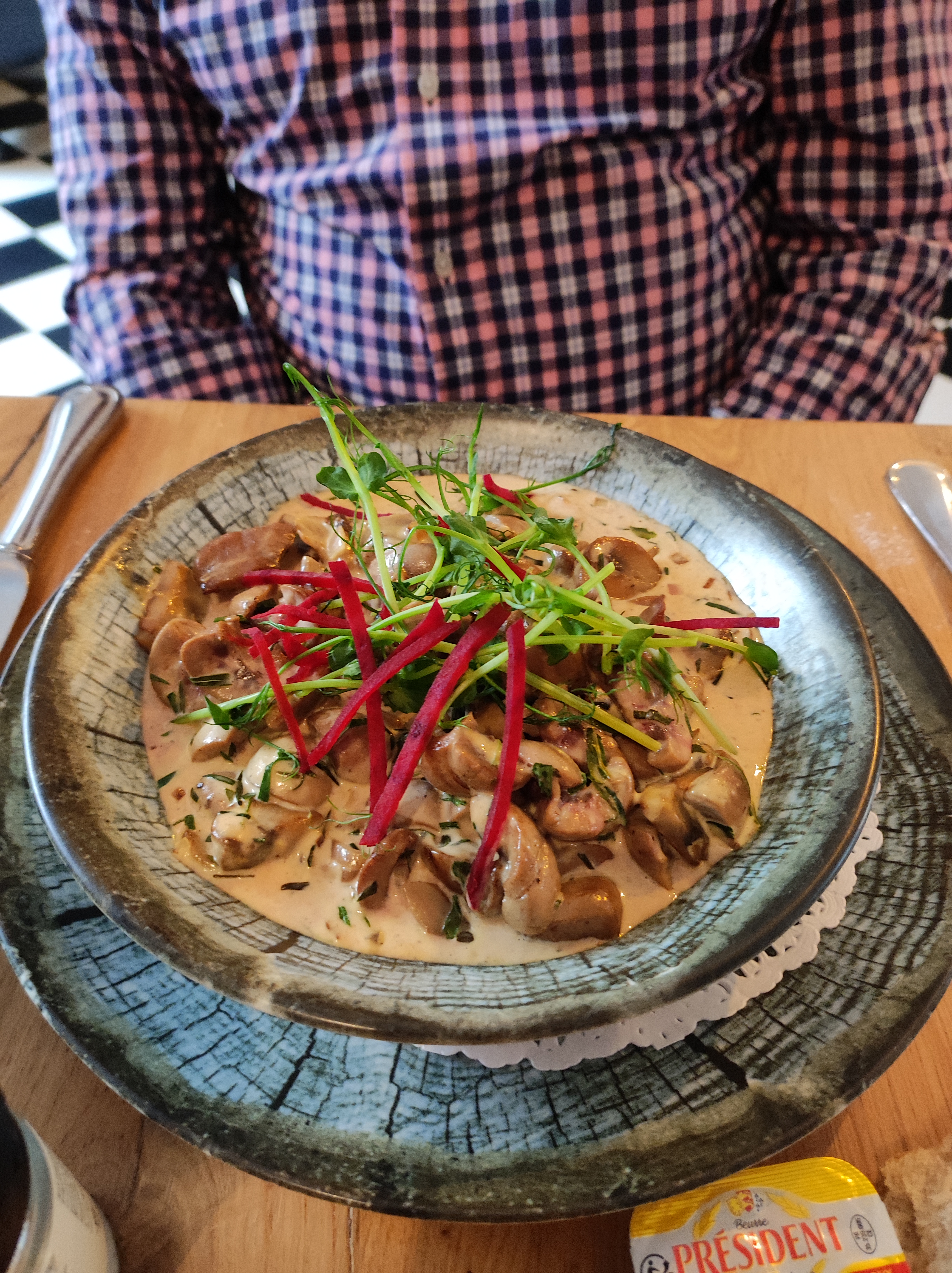 Très belle découverte pour moi ! Entrée croquettes de crevettes grises Plat aiguillettes de poulet sauce forestière Dessert crème brûlée à la chicorée Un régal ! Très bon accueil et service !