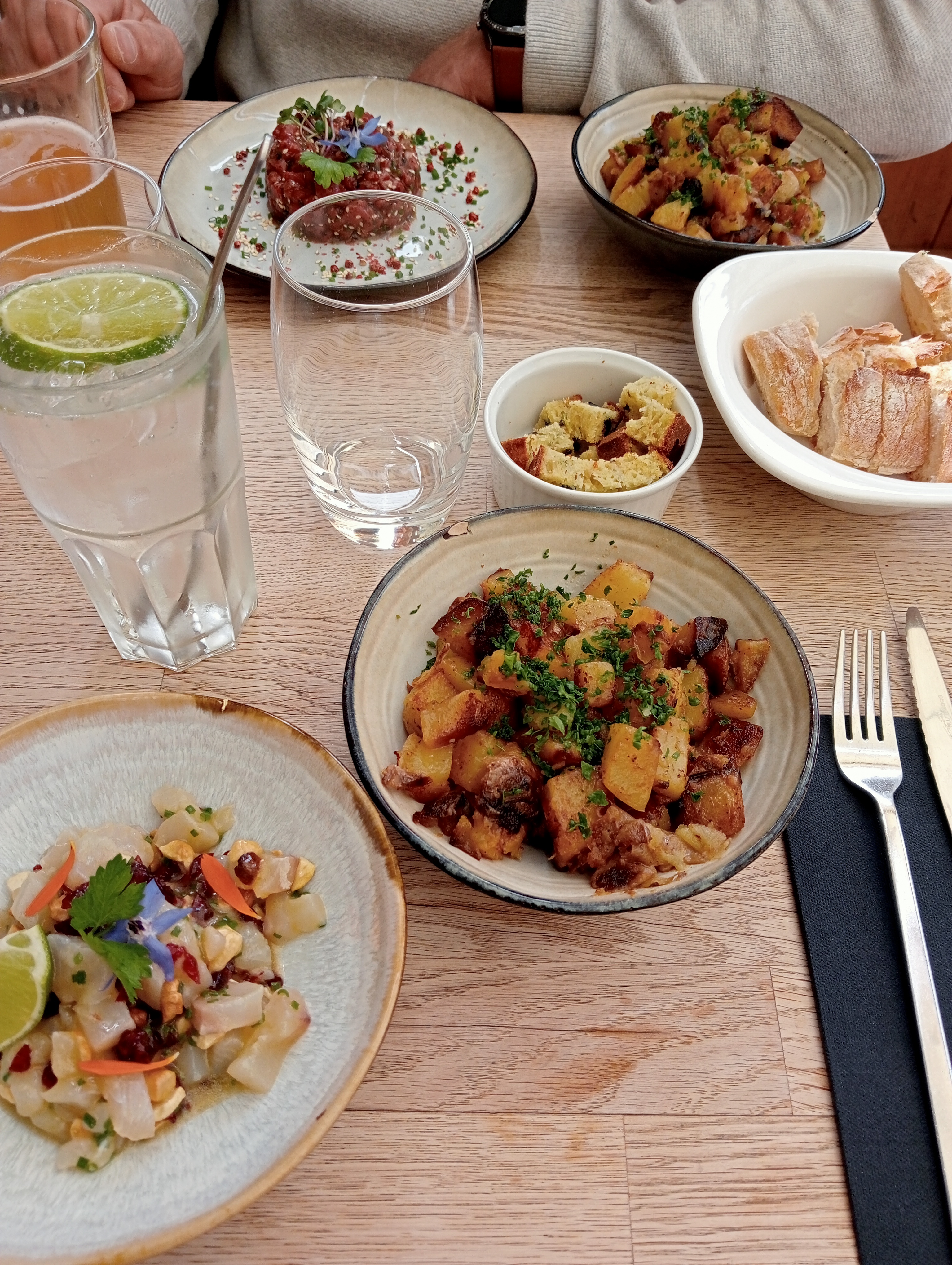 Nous adorions ce restaurant, avant le changement de cuisinier... Le concept des tapas, pourquoi pas. Mais tout arrive d’un seul coup sur la table minuscule, problème pour tout poser correctement. Il faut du coup se dépêcher de manger, sinon ça refroidit. Certains plats proposés sont insipides, d’autres trop salés. Je déplore aussi le manque de légumes, en accompagnement on propose des féculents ou de la salade verte. Le repas est donc expédié (il n’y a plus d’entrées proprement dites), je pense que ça doit leur permettre de servir plusieurs fois sur la même table vu qu’on y reste moins longtemps.