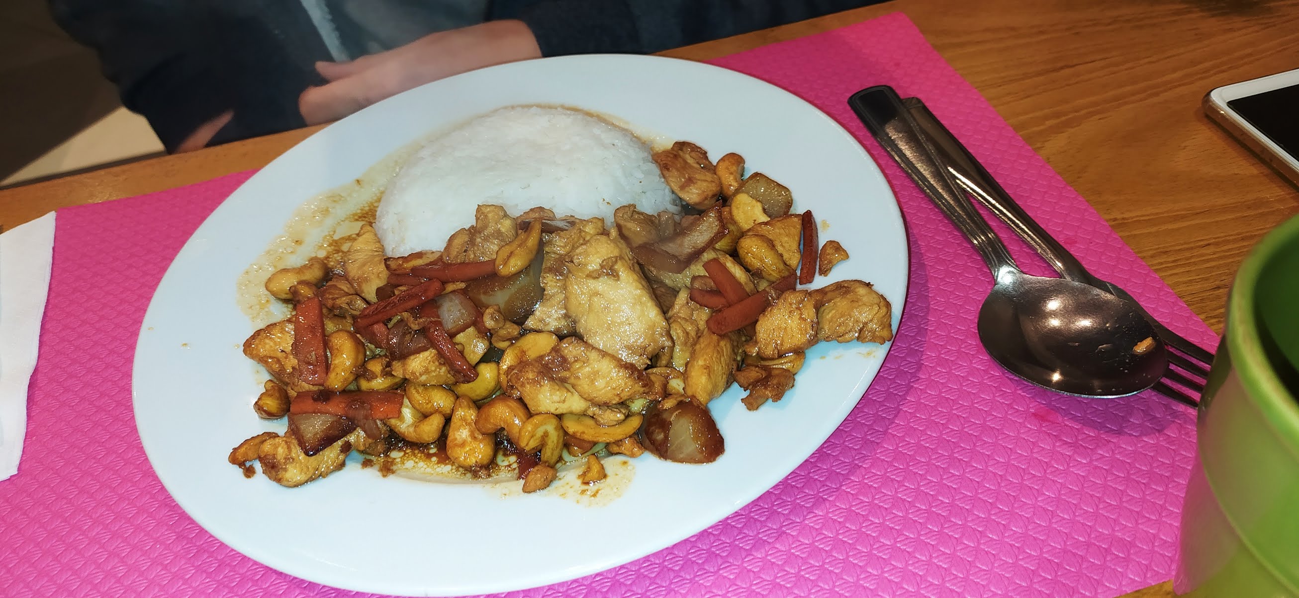 La nourriture était bonne, nous avons eu les nouilles qui étaient délicieuses mais la noix de cajou était ok, le riz frit était vraiment bon. Cependant le service était très lent