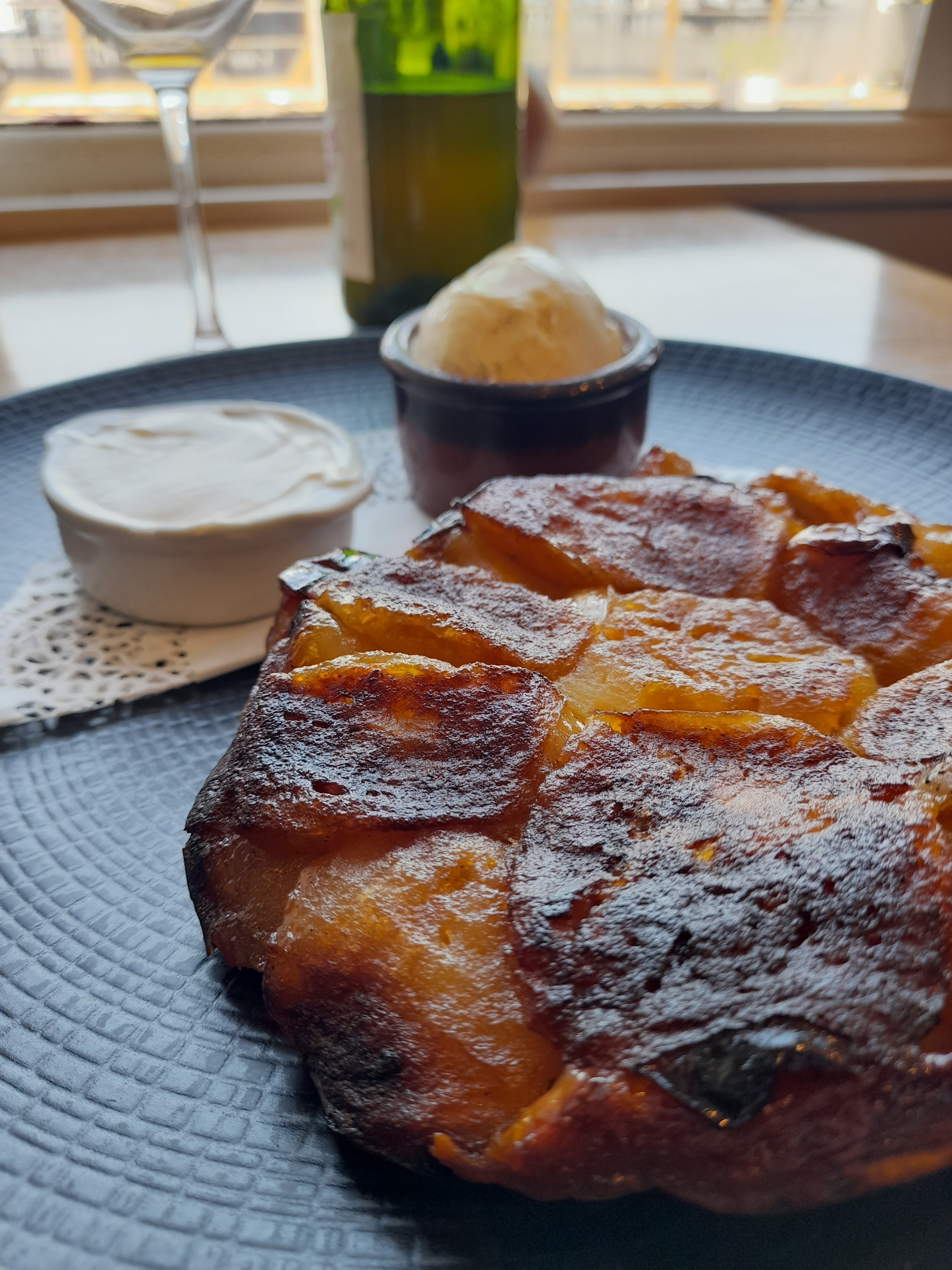 Accueillis avec des toats et rillettes de poisson bien agréables, je me suis délectée avec des coquilles saint Jacques à la crème, cuites à la perfection et accompagnées d'une sauce merveilleuse et de pommes de terre écrasées succulentes. Pour terminer, une tarte tatin croustillante et chaude servie avec de la glace et de la crème, l'une des meilleures que j'ai goûtée. Bravo chef ! Si nous habitions près de Dieppe, nous serions des habitués du Turbot.