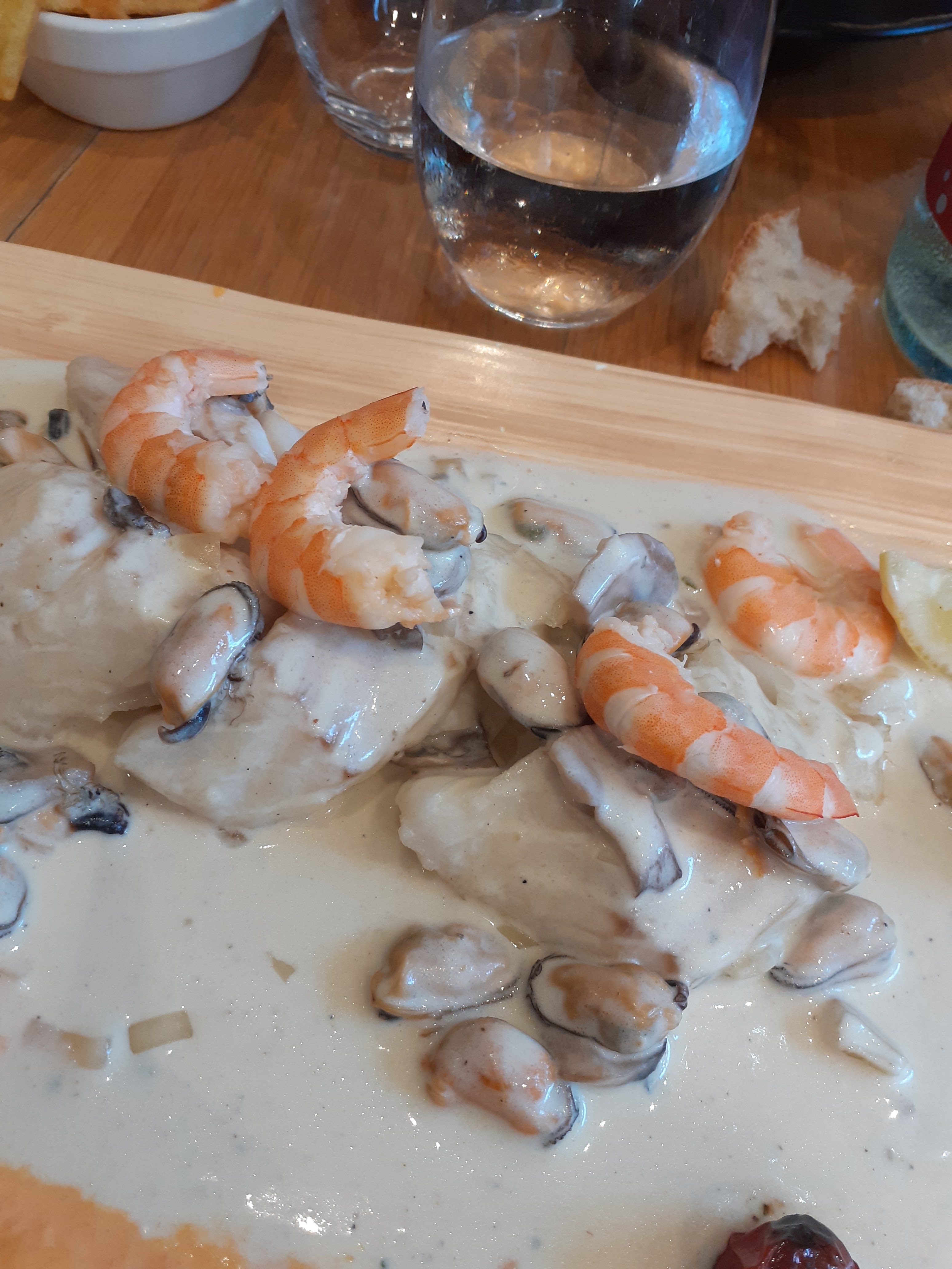 Plats de poissons bien cuisinés, les garnitures sont copieuses et tout est maison. Seul gros bémol, la sauce dieppoise avec des moules......