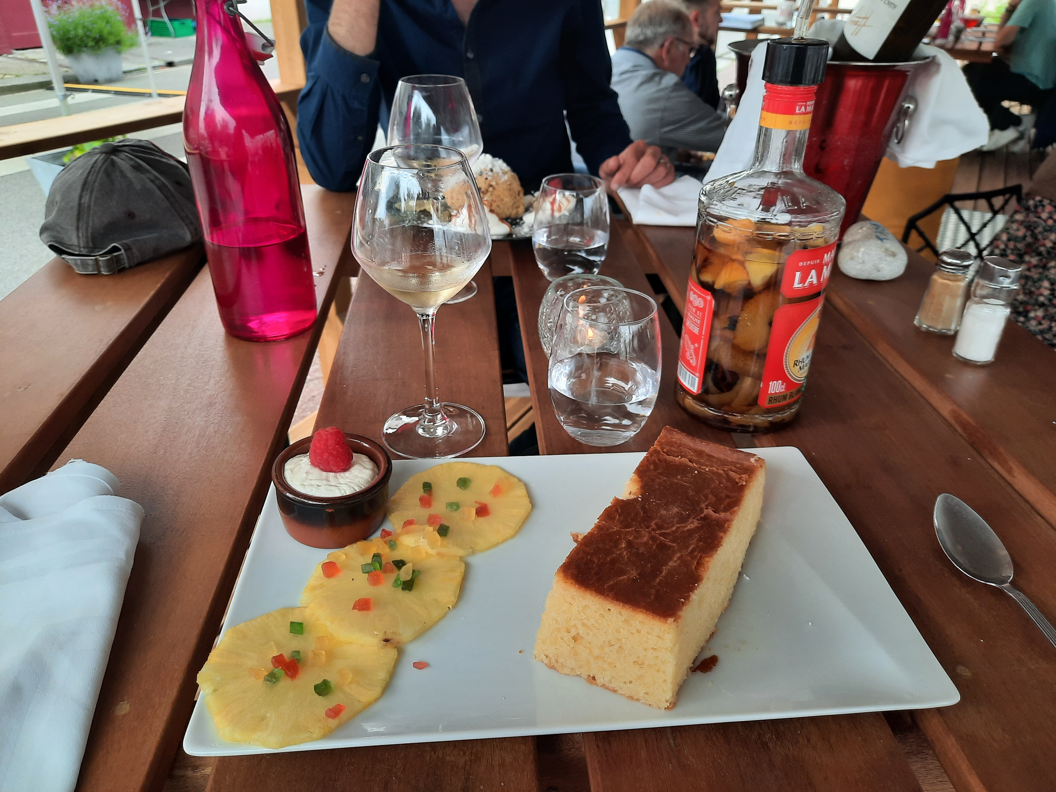 Super restaurant, à l'écart des autres restaurants touristiques Accueil très chaleureux. Un choix raisonnable, marqué de qualité. Des menus parfaits de l'entrée au dessert. On nous l'avait recommandé par deux sources différentes. Parfait pour un bon repas en couple, en famille ou même seul. Le serveur est très sympa. Photo d'un dessert typique. Je vous laisse deviner :-)