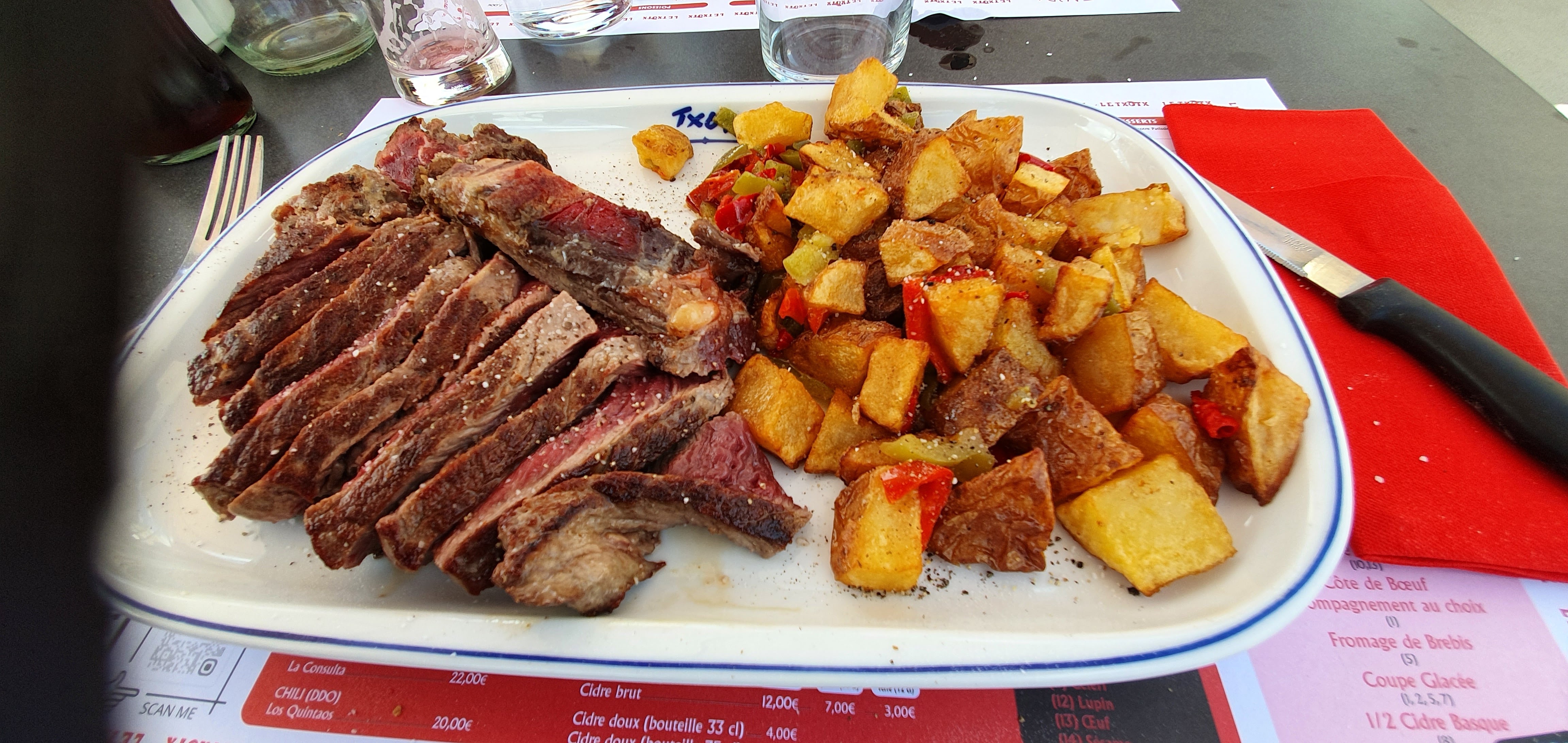 Étant venu plusieurs fois et ayant voulu amener une amie en visite pour lui faire découvrir une cidrerie basque, j'ai été extrêmement déçu par ma dernière visite ... Une côte à l'os trop grasse, pas bien salée, des patatas bravas sans sauce et sans soin apporté... Sans parler du prix significativement plus élevé que sur des restaurants similaires du pays basque ... Est-ce le fait d'amener une étrangère qui justifie aussi peu de soin apporté ? EDIT : je poste le jour de fermeture car je m'efforce de ne pas mettre des avis à chaud après une mauvaise expérience, c'est d'ailleurs pour cela que je ne vous ai pas mis 1 seule étoile (vu que mes visites précédentes s'étaient plutôt bien passées, d'où d'ailleurs mon questionnement, ma seule vraie mauvaise expérience se déroulant quand quelqu'un qui ne parle pas français était avec moi) mais vu le ton de votre réponse, cette indulgence était peut être de trop ...