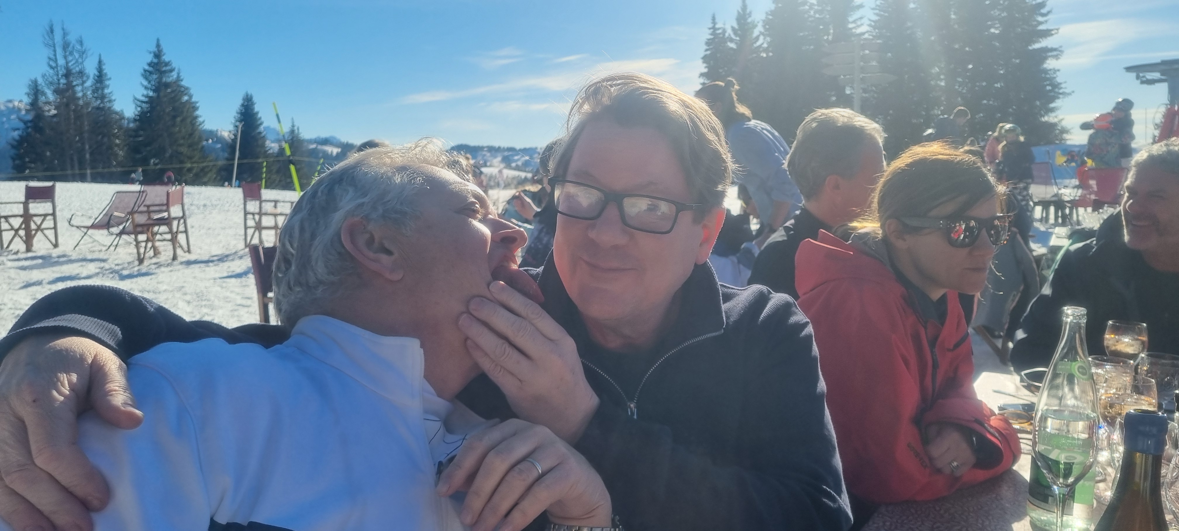 Apéritifs après une belle journée de ski ! Bonnes boissons et musique. Vous pouvez revenir à ski aux Gets et à Morzine à partir d'ici.