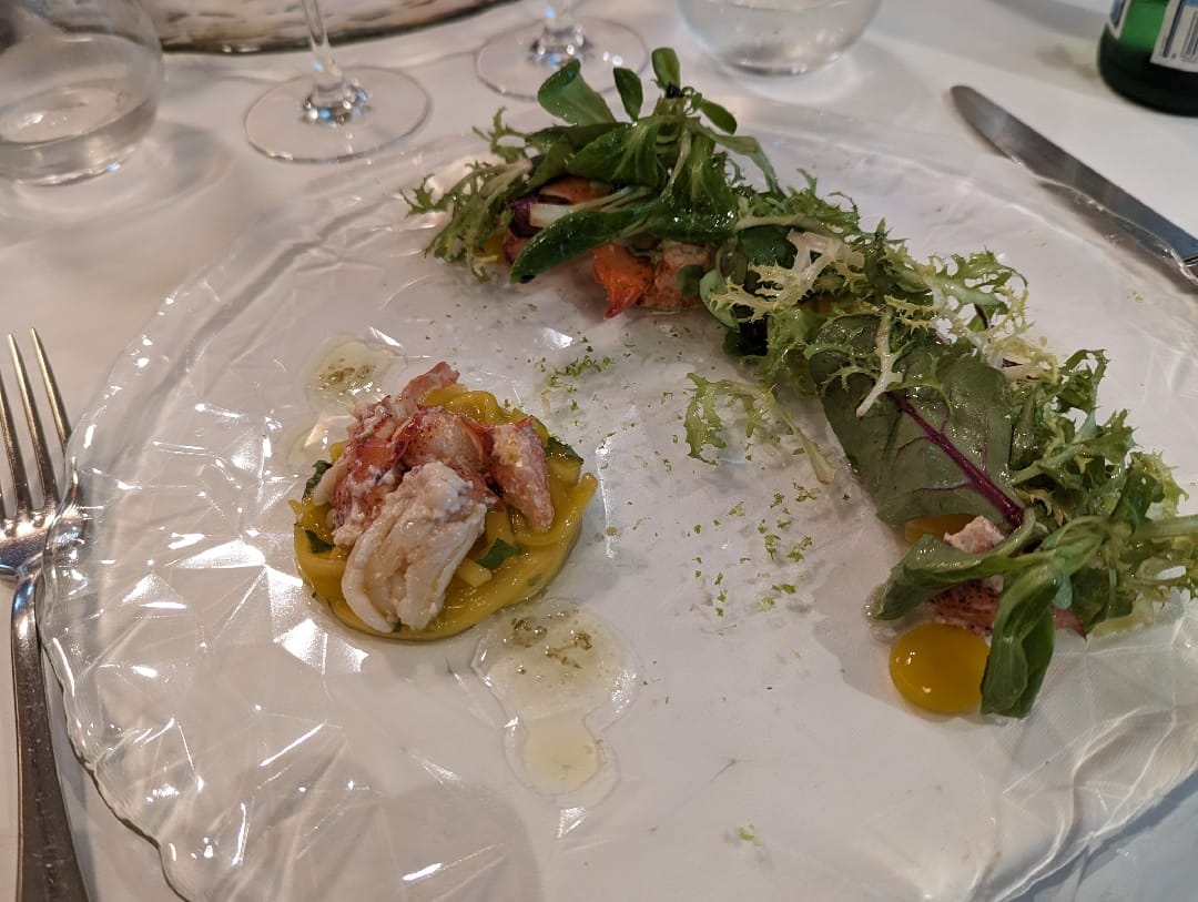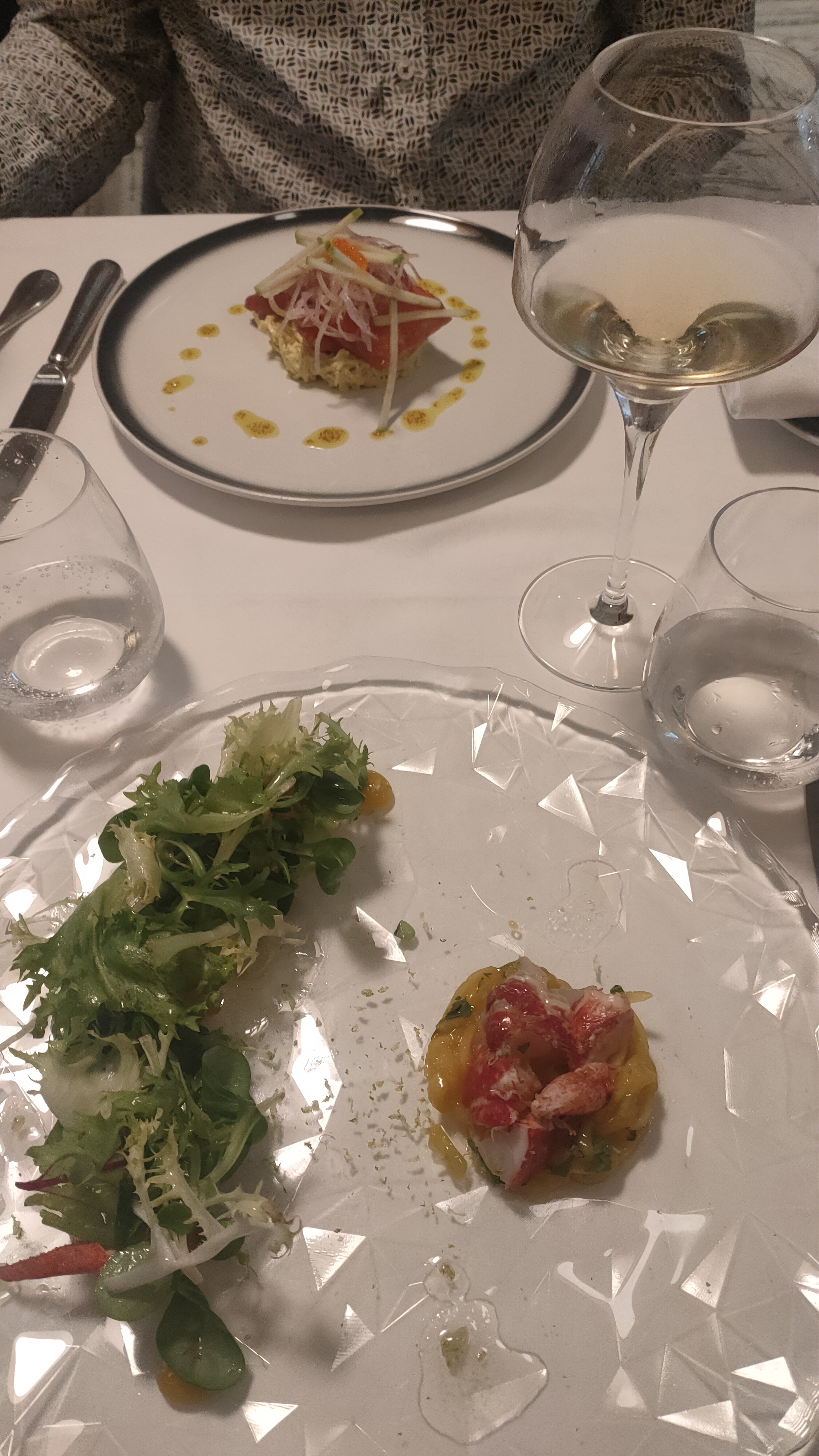 Excellente expérience gastronomique. J'ai eu la truite de mer et son filet et ma femme la salade de homard et la lotte. Tout était exquis. Ambiance très intimiste, parfaite pour un anniversaire ou une fête. Recommande fortement!