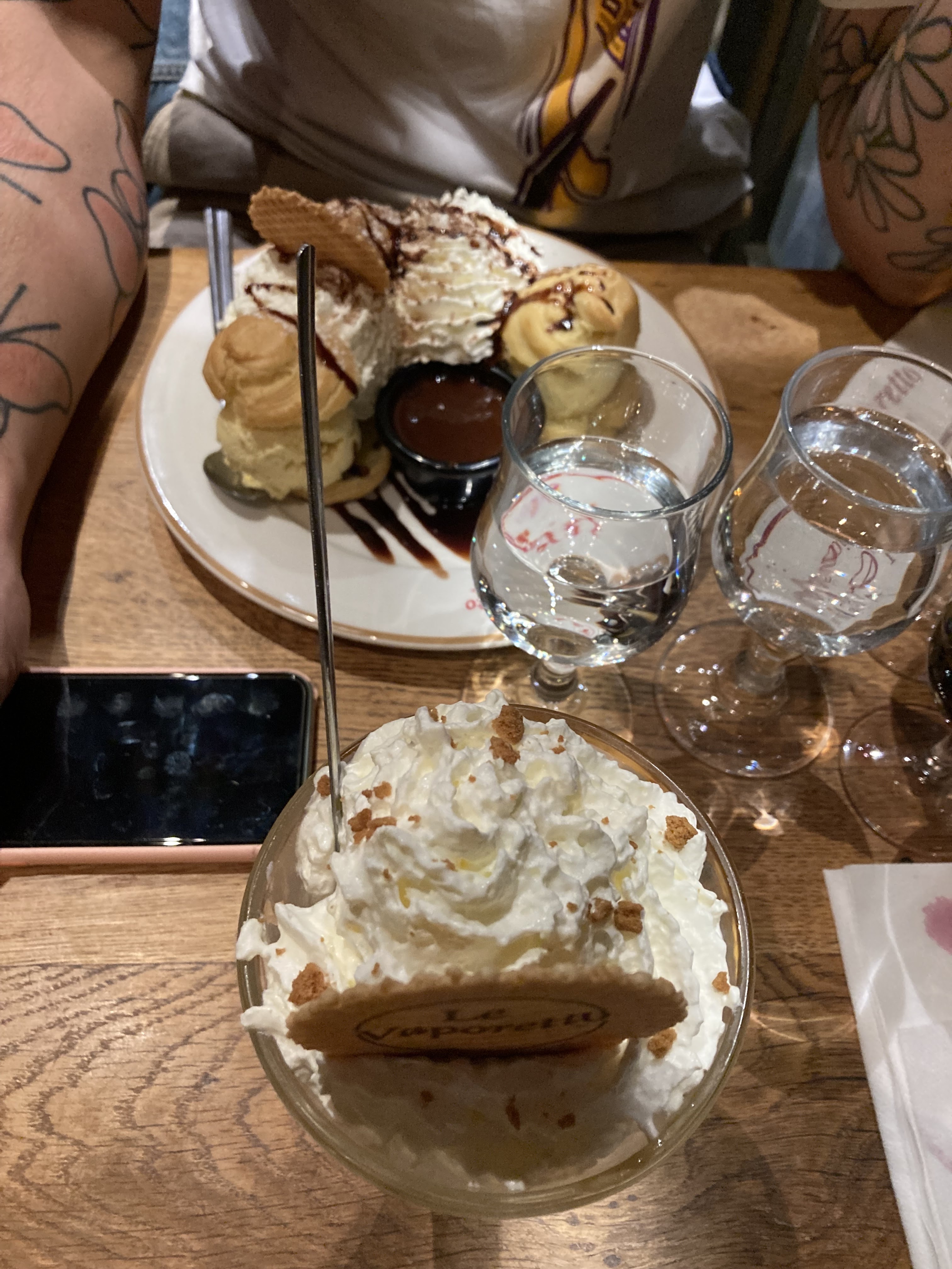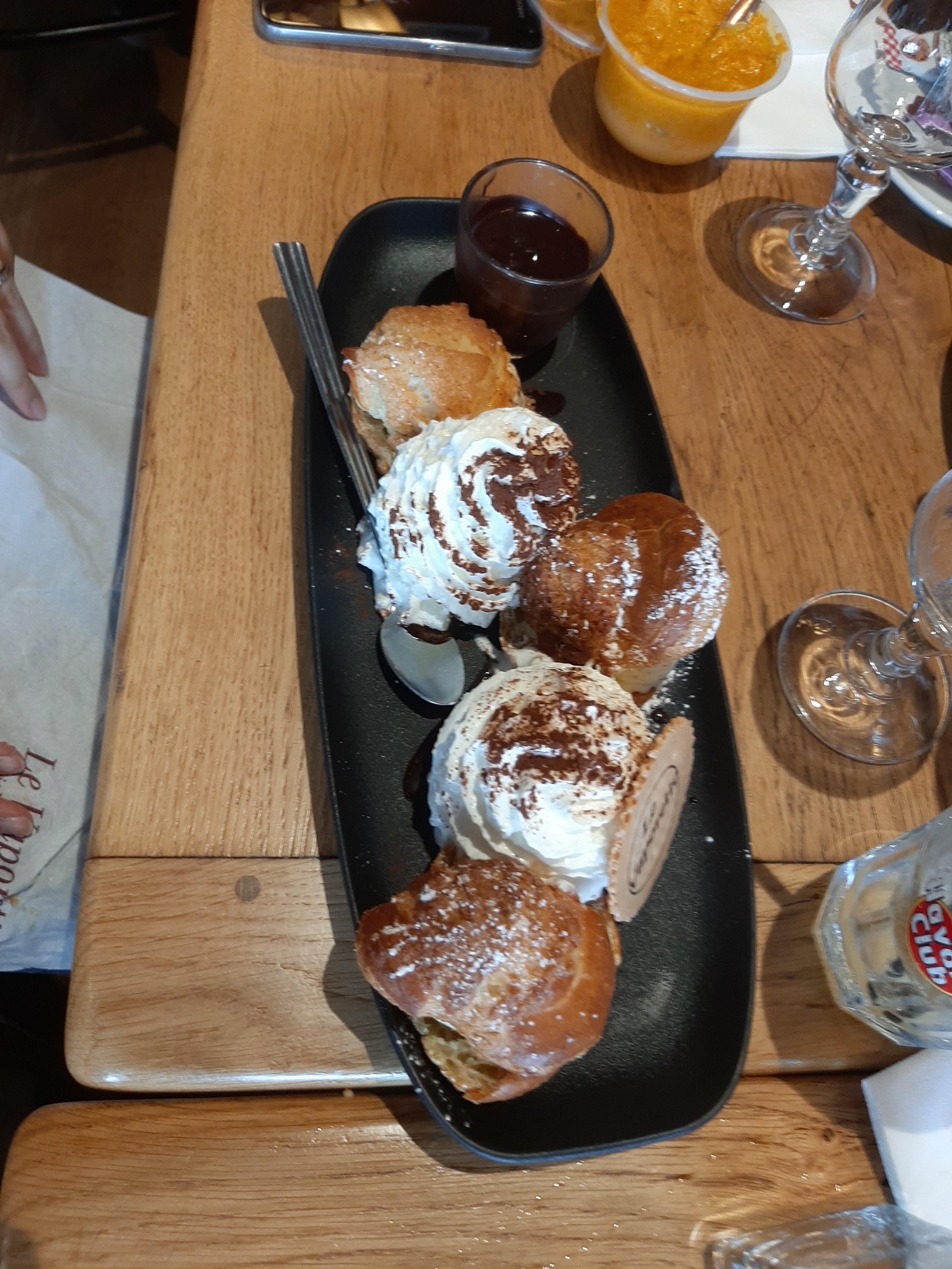 Très bon ! Attention, les profiteroles sont énormes, j’ai dû les terminer au mental… 😬