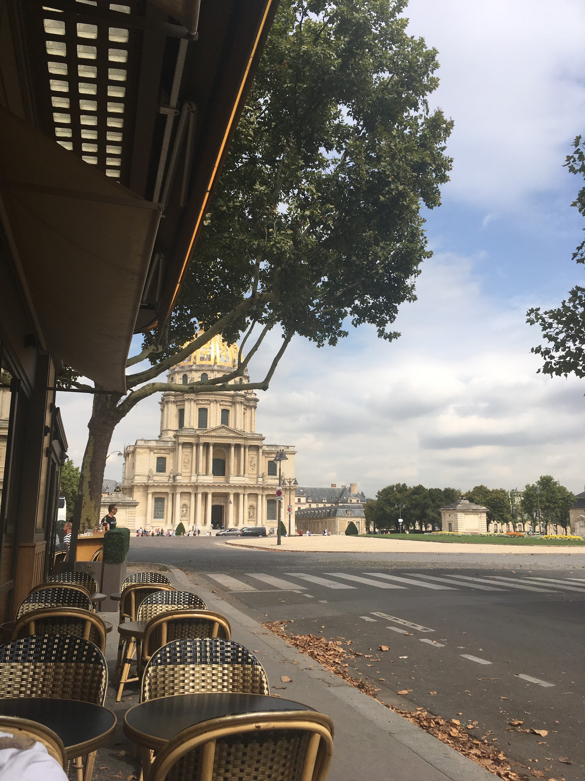 Bel endroit pour s'asseoir et profiter de la vue sur les Invalides. Très bon service