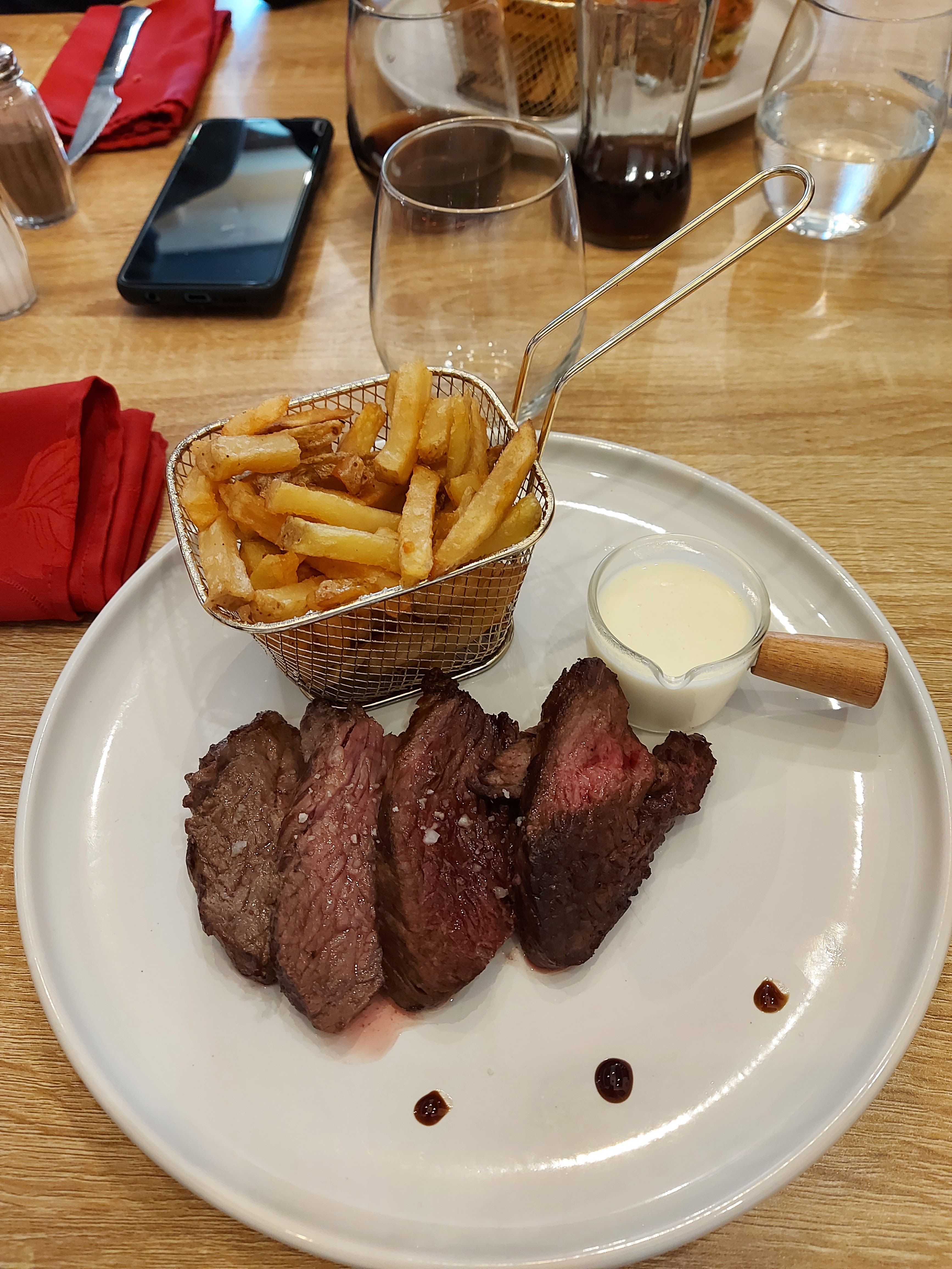 Cote de bœuf pas mal servi frites industriel moche dessert pas fait maison