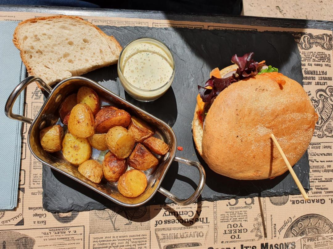 C'est un endroit très sympa, la carte est simple. Les produits sont frais, nous avons essayé une salade et un burger : rien à dire, c'est parfait, c'est maison et c'est très bon. Les prix sont vraiment corrects et la serveuse sympathique. Donc nous recommandons fortement. Seul petit bémol, pas de possibilité de payer en carte, donc prévoyez un peu d'espèces, mais ce n'est pas très grave...