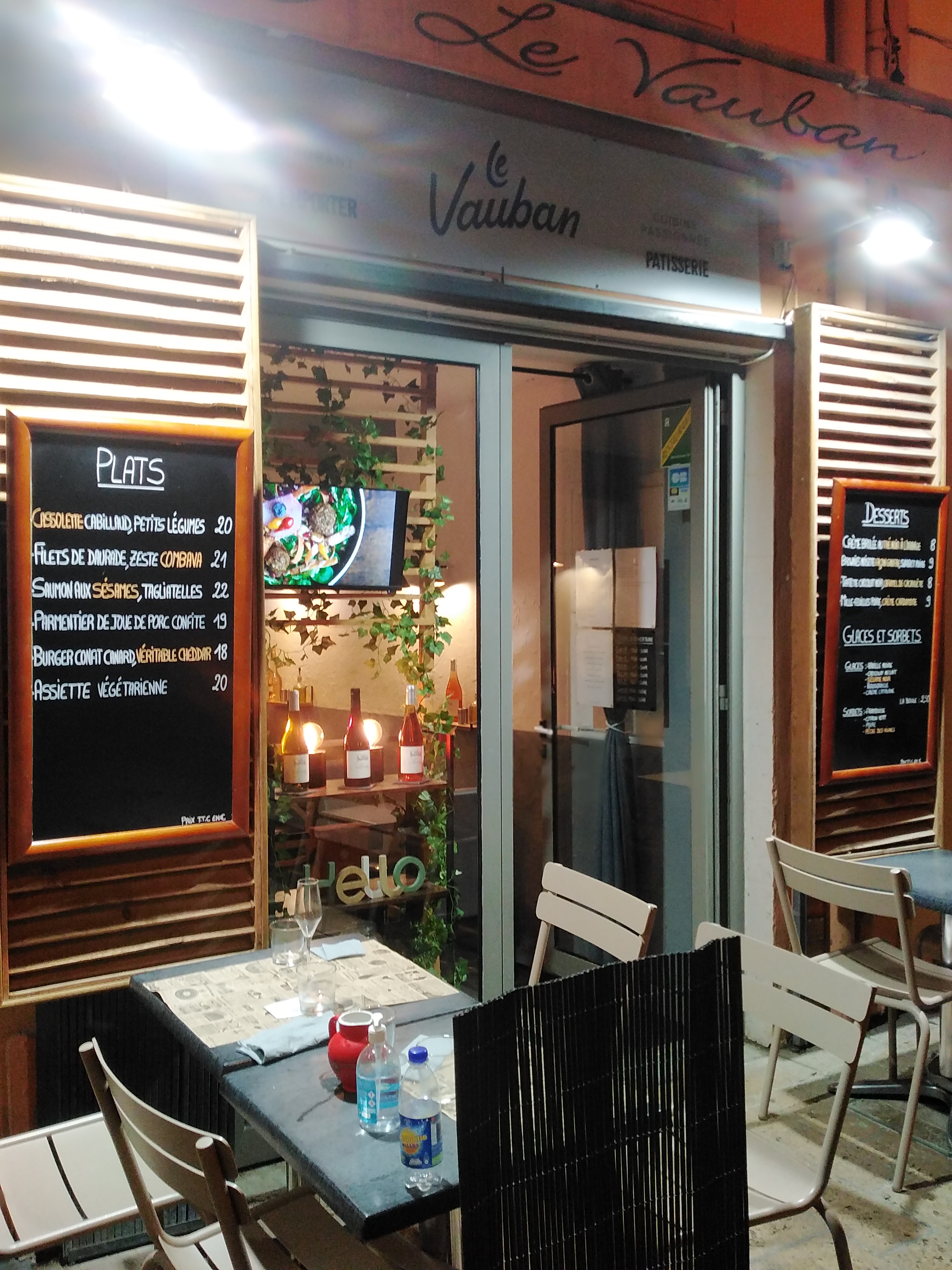 Nous nous sommes arrêter au vauban le temps d'un repas partagé entre 4 amis. En ce début de soirée estivale notre table est en terasse. Nous sommes acceuillis très chaleuresement par le patron. Nous choisissons la formule plat + dessert. Le chef nous propose un filet de saint pierre avec ces petits legumes maisons et frites maison (très important). Le st pierre est parfait, avec une legere persillade. Le dessert tiramisu nutella et creme de marron vraiment au top. Le petit baniuls a été offert en fin de repas ;) Au top. Budget plus que raisonnable.