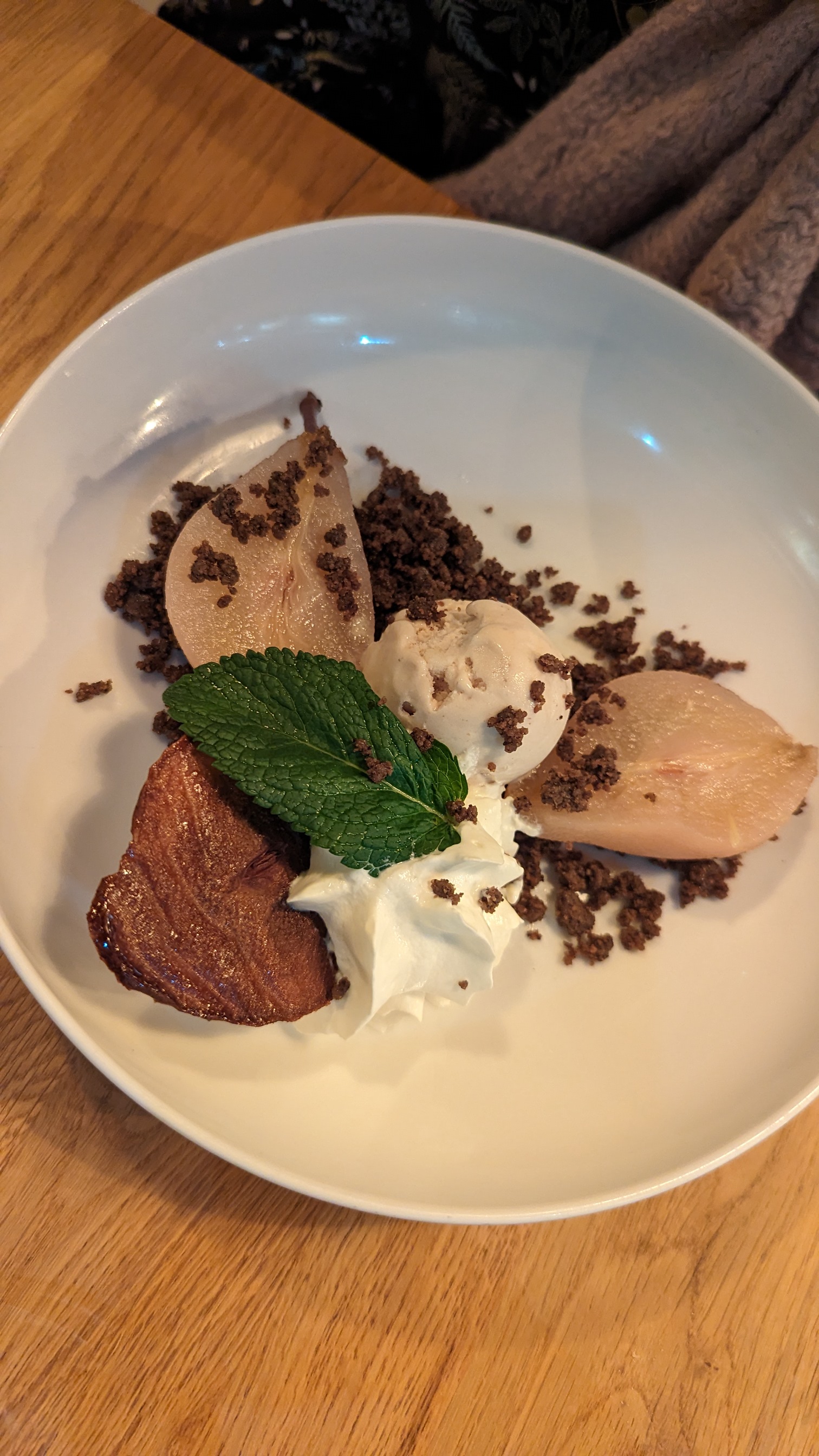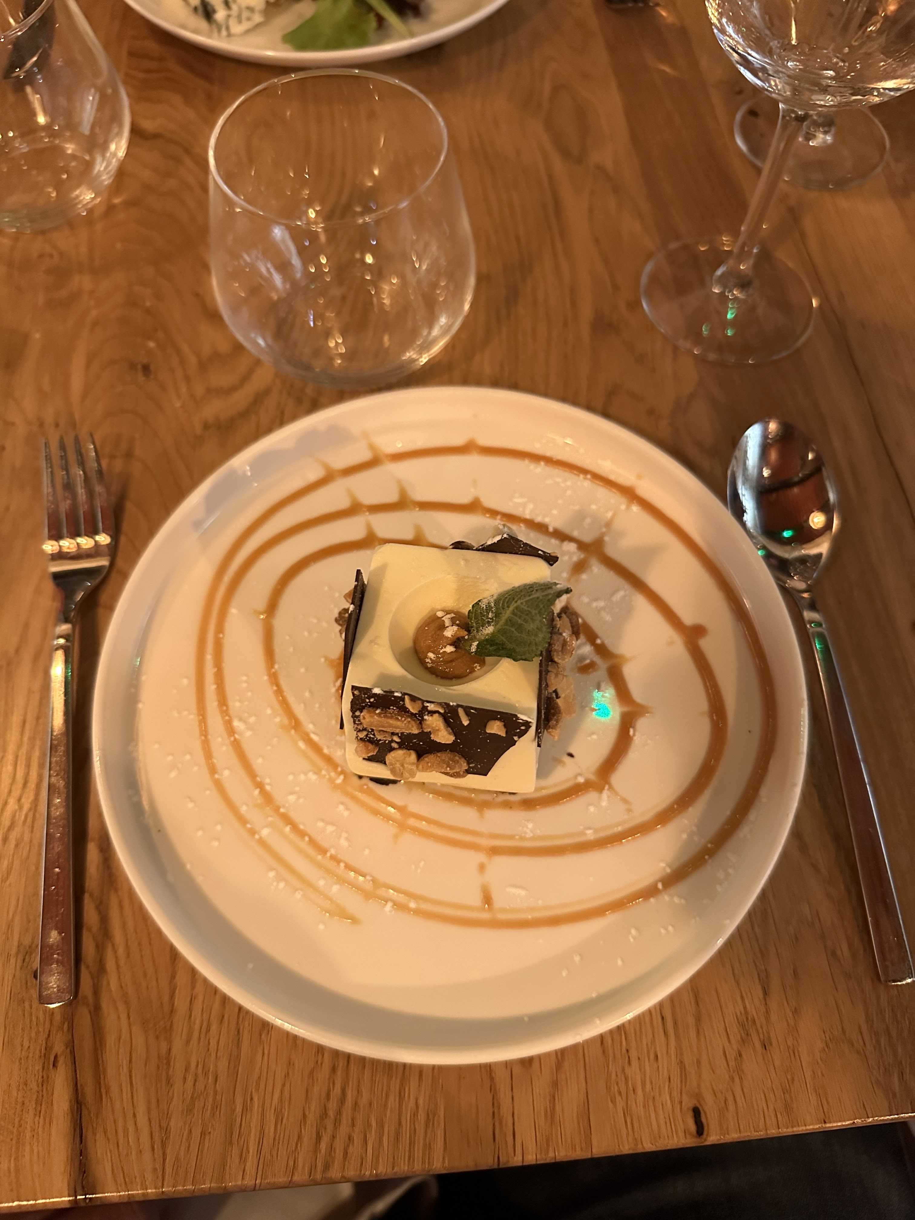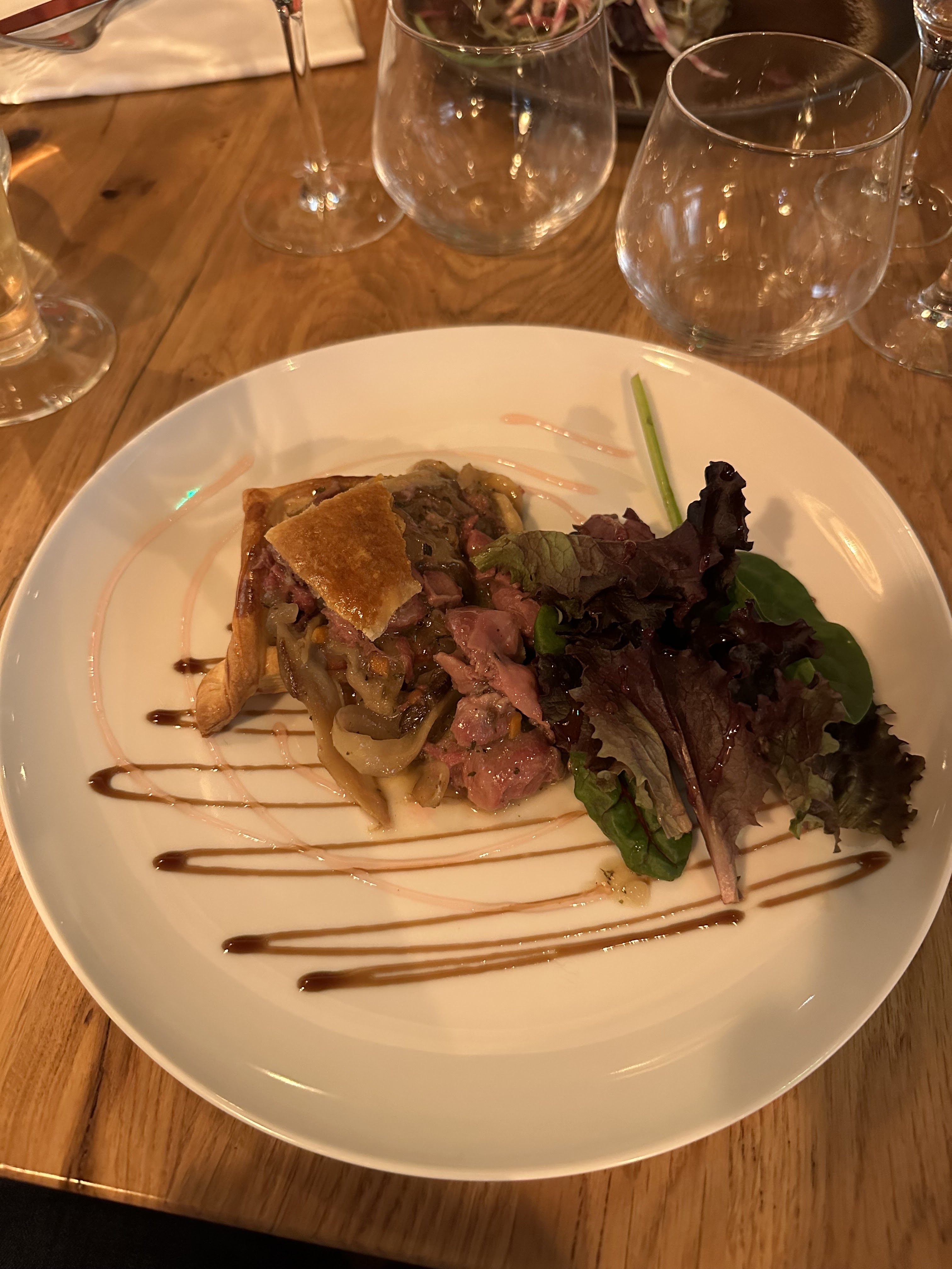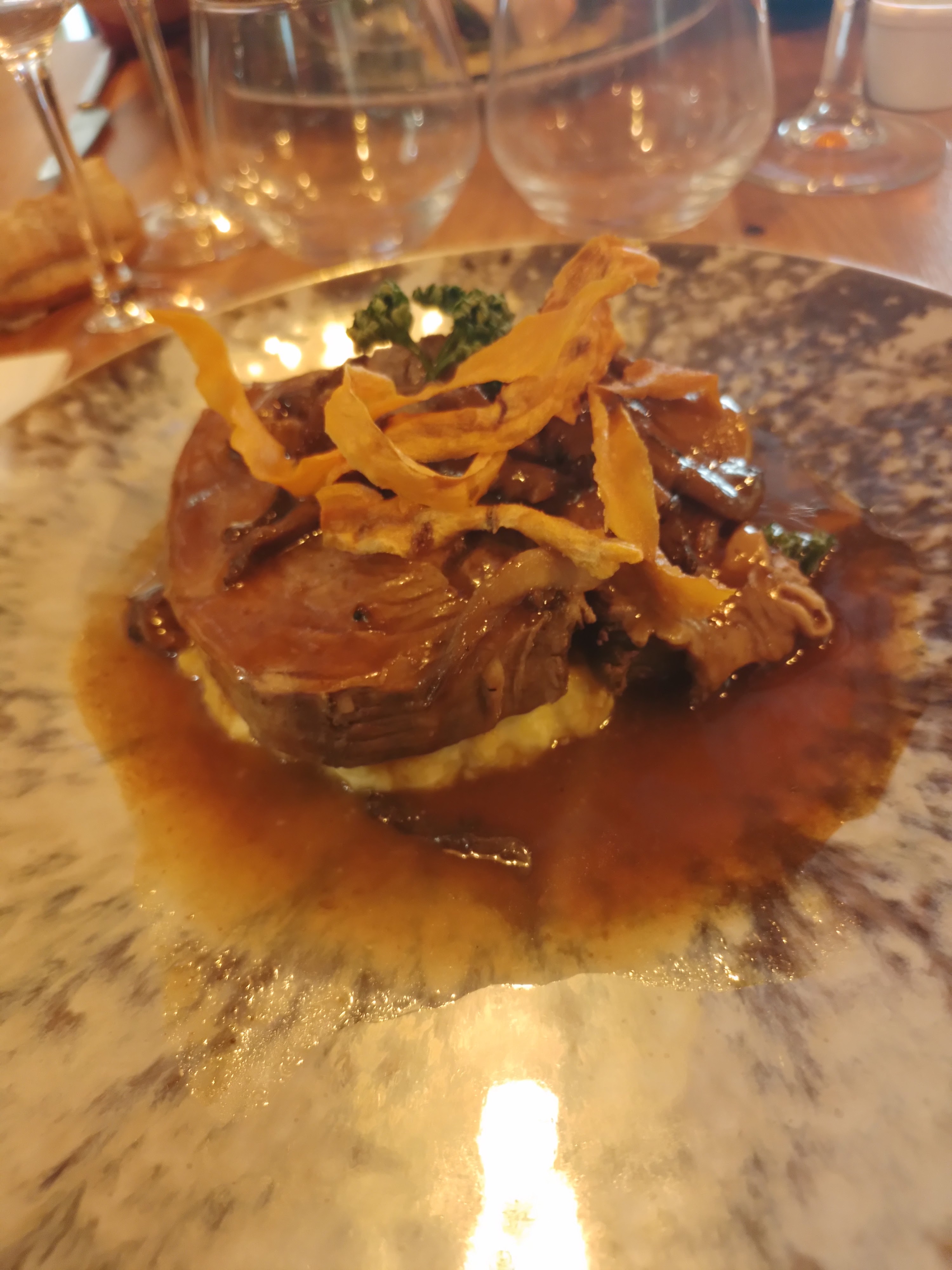 C'est un restaurant qui s'est développé ces dernières années. Maintenant, cela vaut le détour. La carte est simple (formule entrée/plat/dessert), mais la cuisine est vraiment distinguée. Les points culminants pour moi ont été une poitrine d'agneau farcie roulée et un dessert bien équilibré sur le thème de la pomme, qui a fait preuve d'imagination et de compétence technique. Service attentionné, bonne sélection de vins régionaux et excellent rapport qualité-prix. Chaises très confortables aussi! Seul bémol - pas d’option végétalienne à la carte.