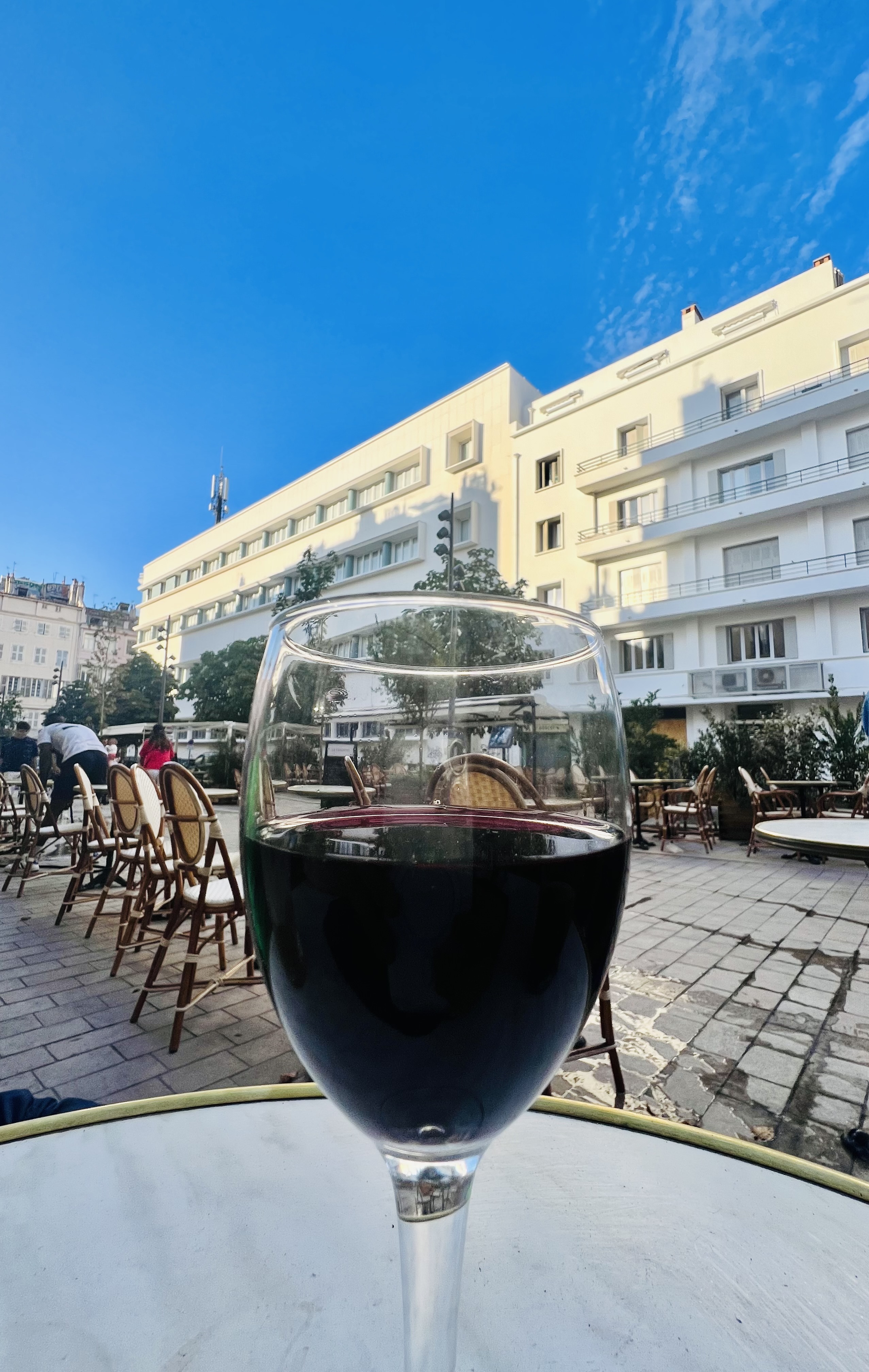 Mercredi 24 08. 9h 46. Assis d’épuisés 10 minutes le serveur fait semblant de pas te voir ou alors il est aveugle … on va aller prendre le petit dej ailleurs !!