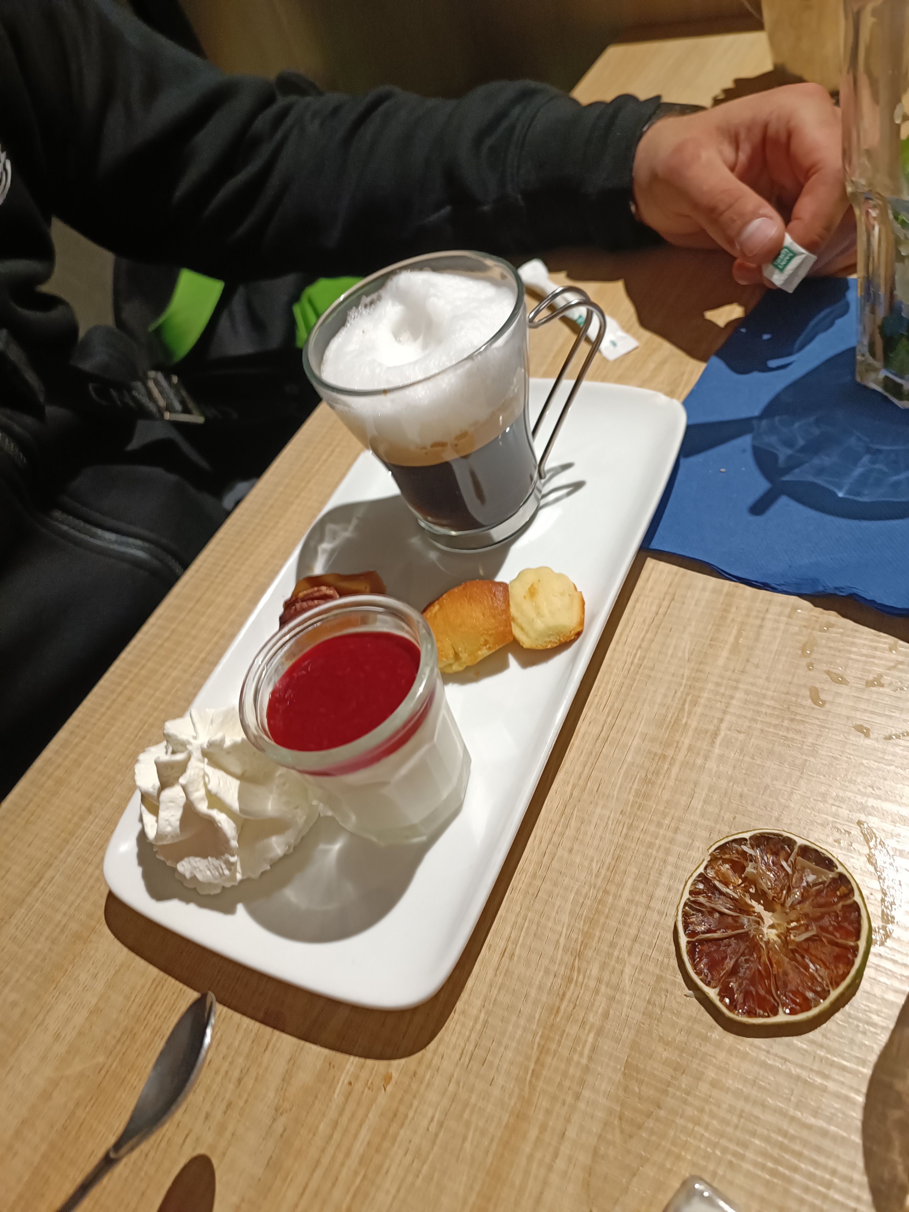 Le chocolat chaud es réchauffé puis encore réchauffé. Trop d’attente. Serveur pas très aimable