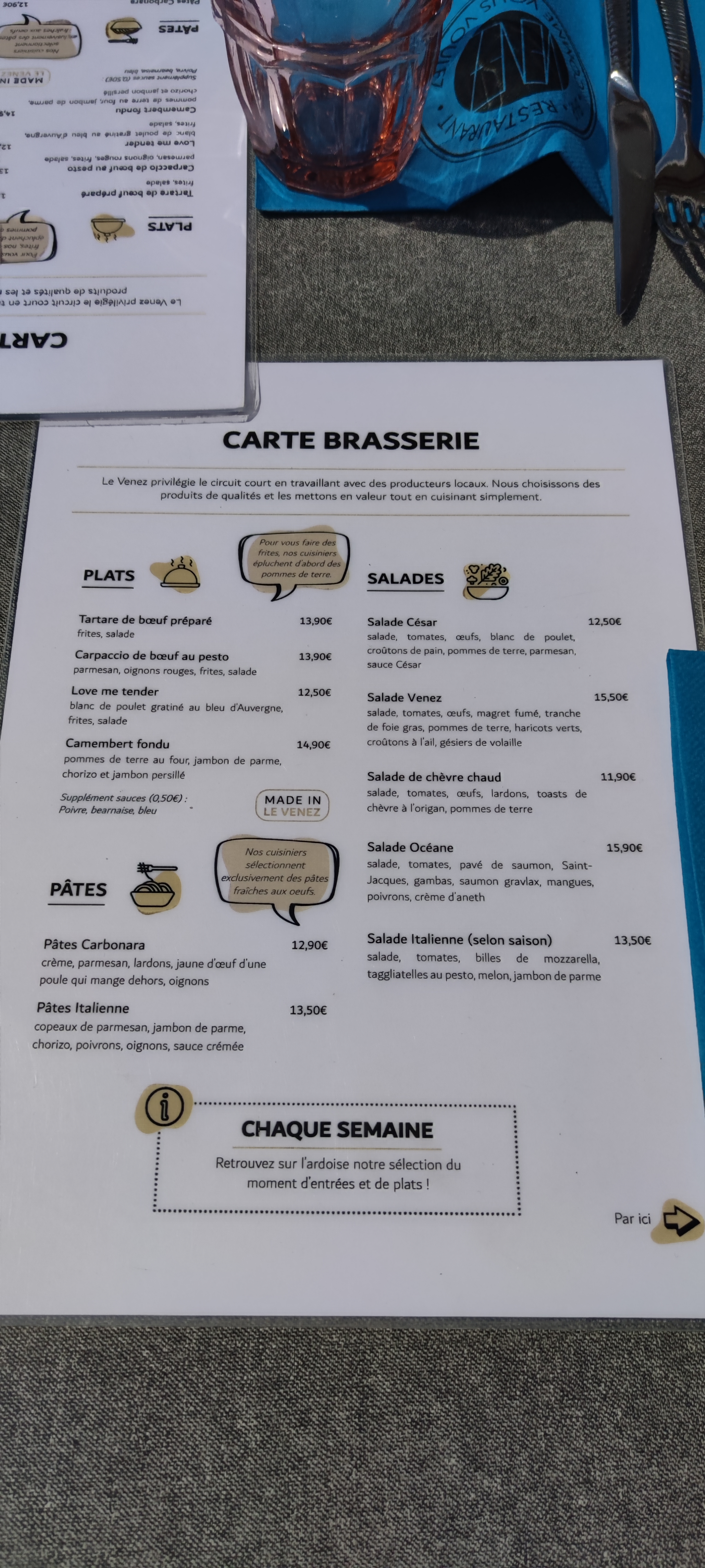 Mon métier étant fait de déplacements je fréquente donc une multitudes d'hôtels et restaurants toute l'année. J'ai déjà dîner au VENEZ en Mai 2022. Je suis de retour au MANS pour le GP en 2024. Le personnel est toujours aussi accueillant, sympathique et les plats dont toujours aussi qualitatif. Sommes passés a 2 sans réservation un Jeudi soir, j'ai pris une salade l'Italienne... 👌🌟👌. Je reviendrais manger chez vous avec plaisir . Merci à votre équipe.