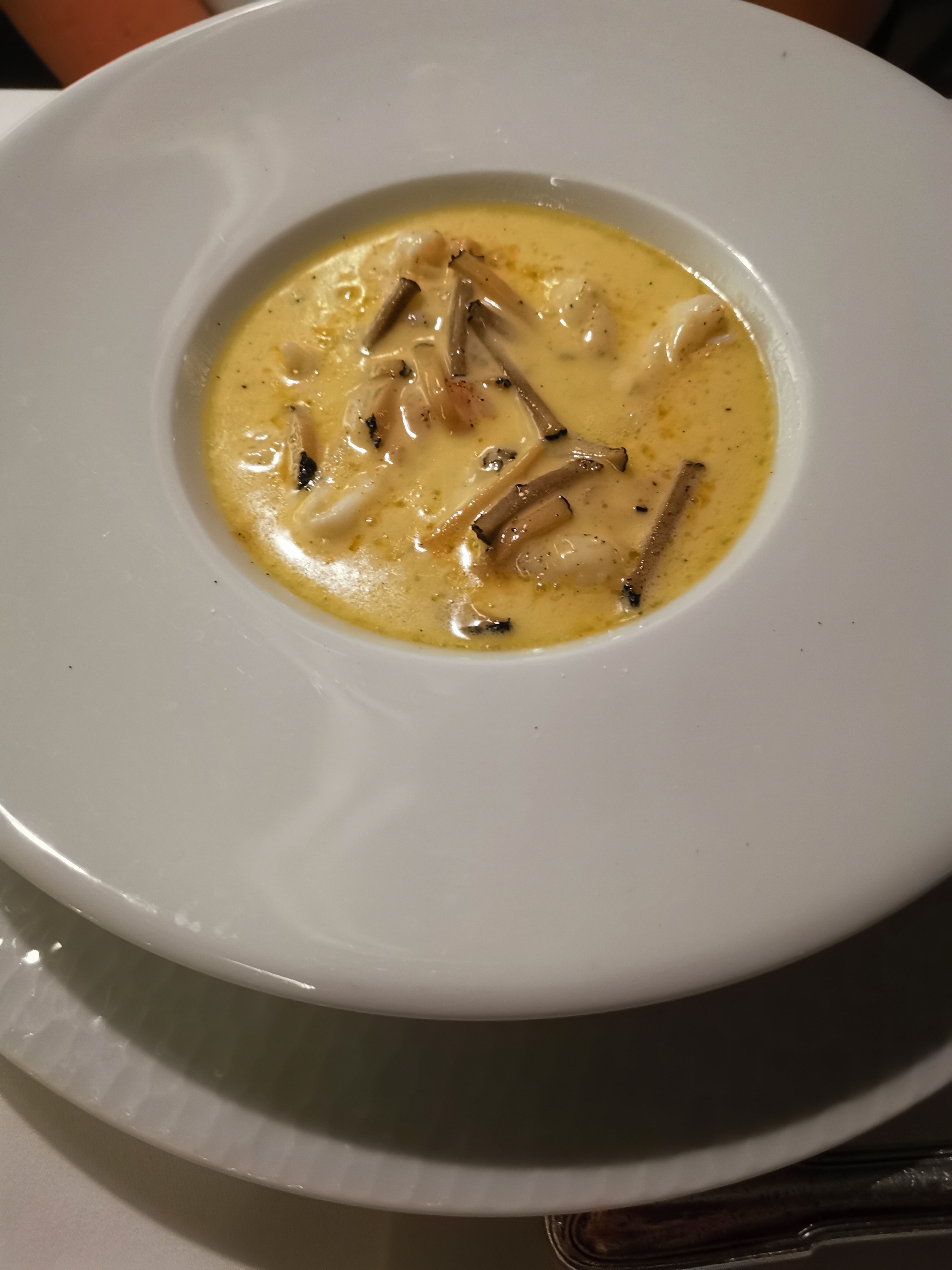 La cassolette à la truffe est délicieuse le personnel est sympathique. Bonne atmosphère. Et merci pour les amuses bouches et les petits fours