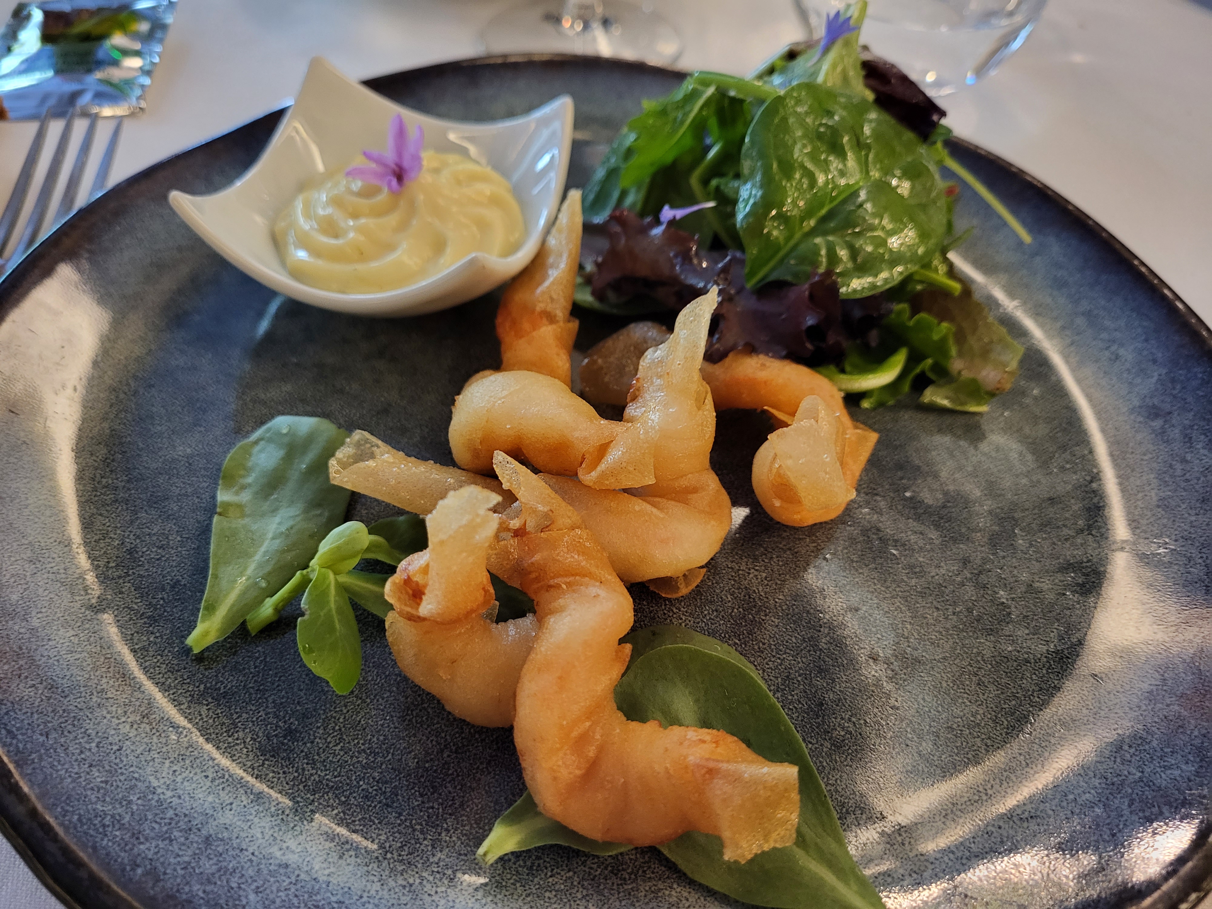 Fruits de mer incroyables dans un restaurant gastronomique. Réservations nécessaires. Faites la dégustation du chef pour quatre plats. Les huîtres et les crevettes truffées sont mes préférées.