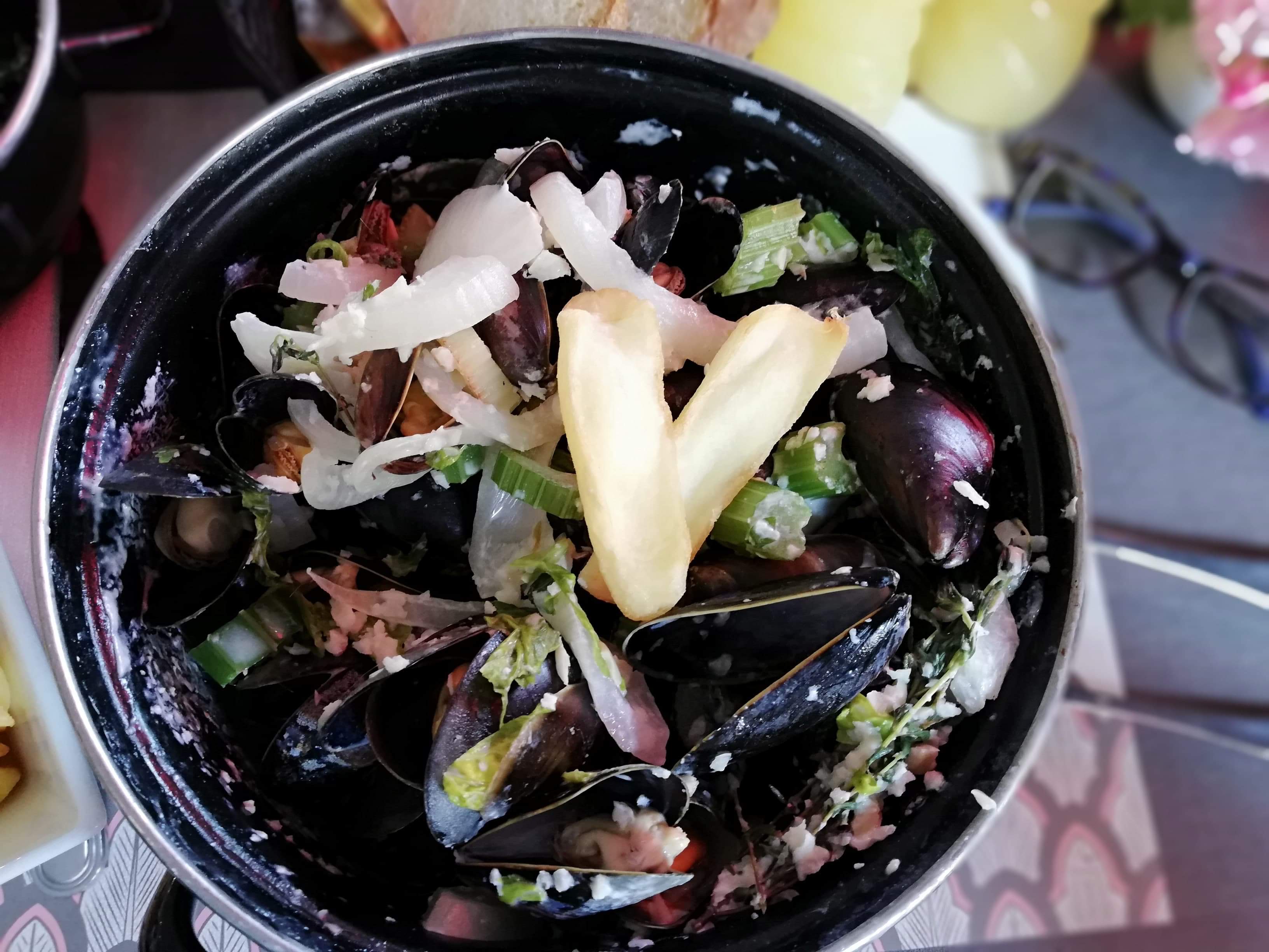 Produits de qualité +++ Les moules étaient excellentes, chaudes jusqu'à la fin du repas Chaque coquille avait sa moule et elles étaient toutes cuites Céléri, thym et oignon frais. Les frites étaient bonnes aussi, une mayonnaise faite maison !! Excellent repas Un peu trop d'attente pour le service, mais le personnel est gentil