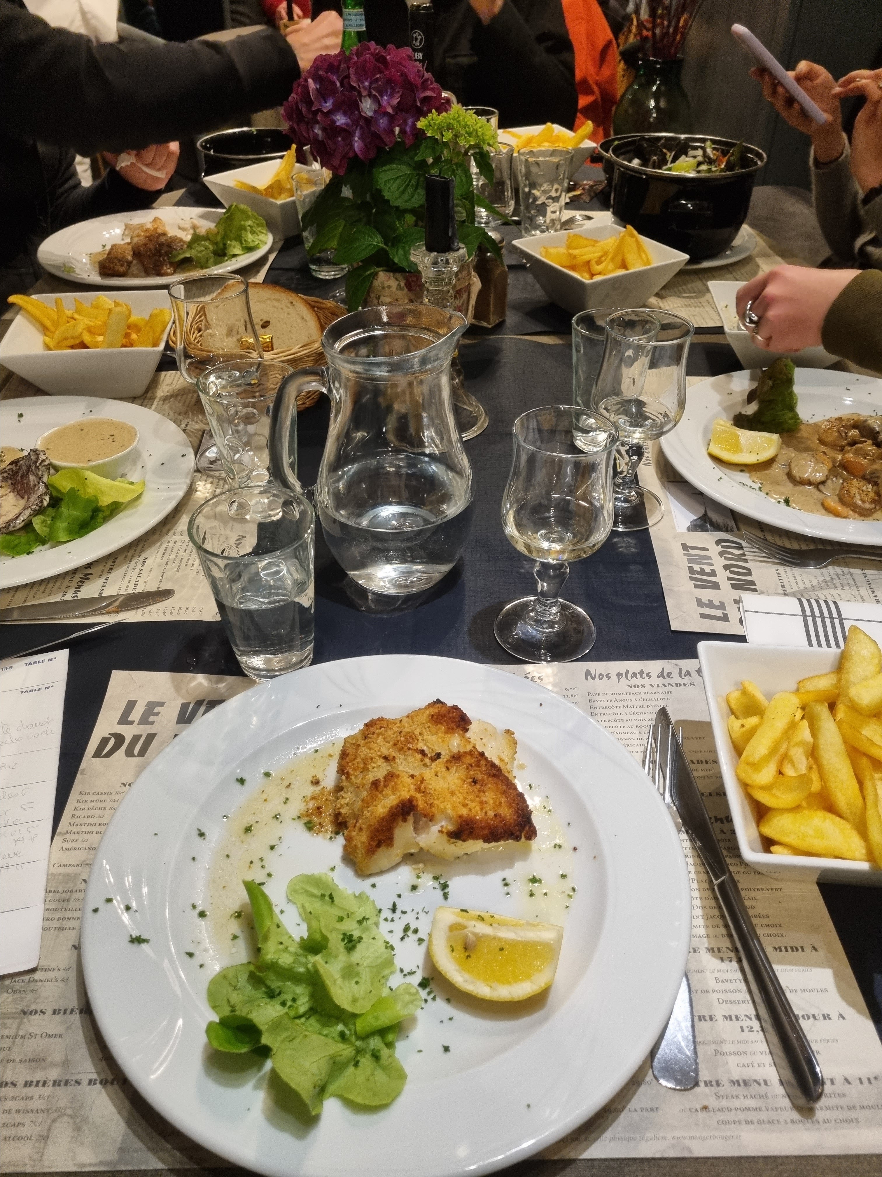 Excellent, très bon service gérante attentionnée très agréable nous sommes arrivés à 14h mais elle nous a trouvé une table Super plats, excellent poisson, dos de cabillaud bien epais, cuisson exquise et légumes fondantes bien assaisonnés moules très très bonnes, grosses frittes bien moelleuses bien crustillantes pas grasses Adultes et enfants nous nous sommes régalés MERCI