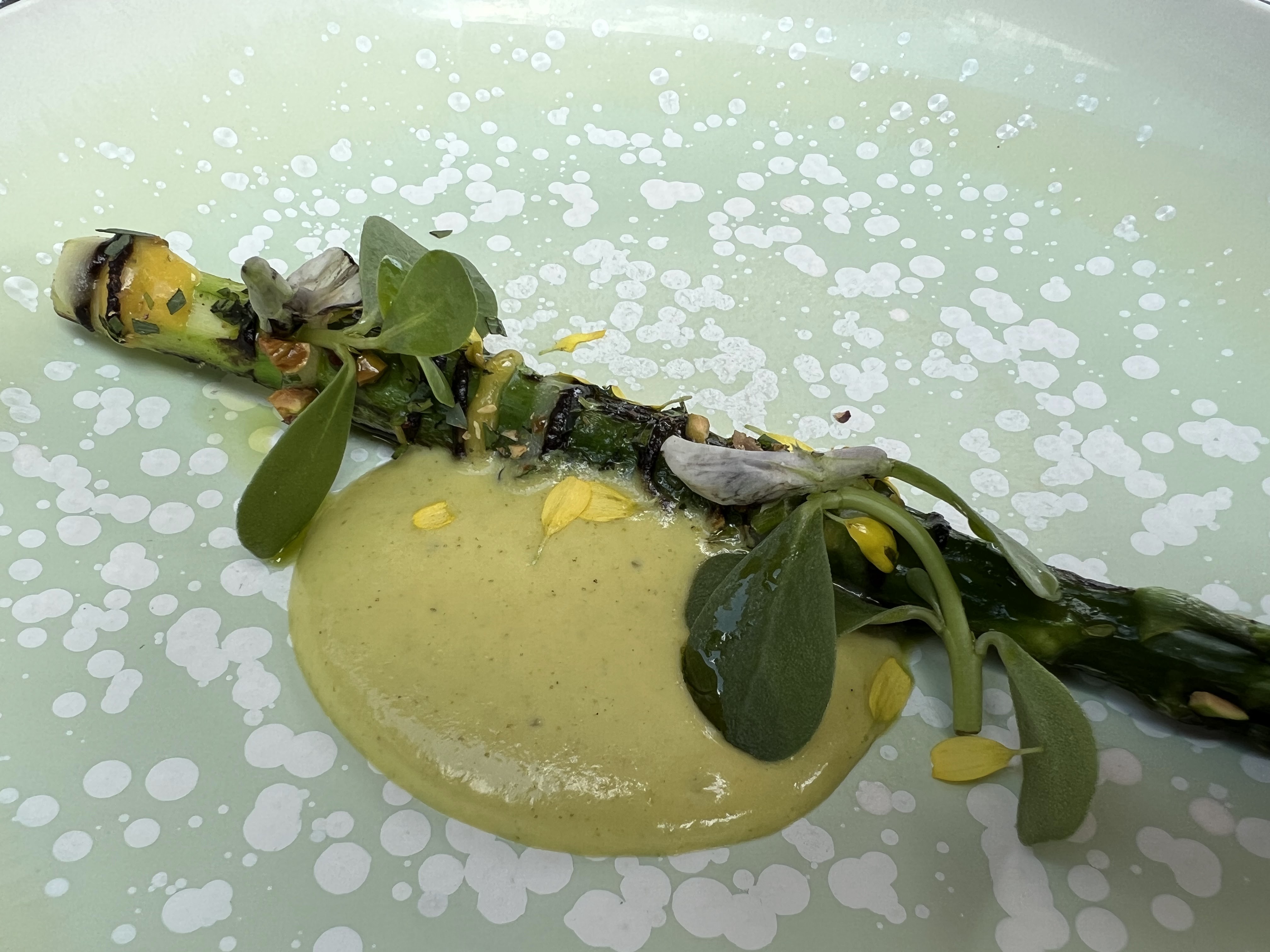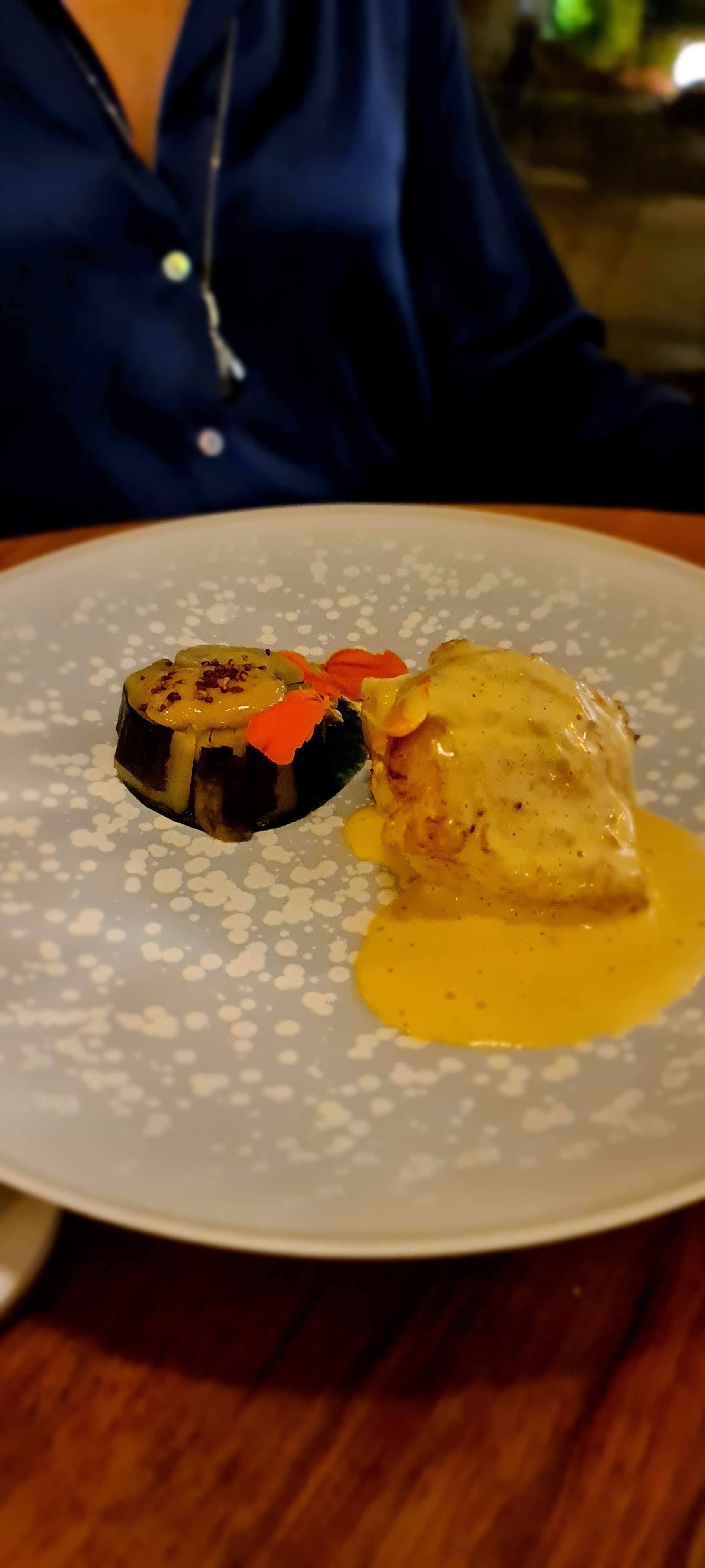 Assiette et cadre en harmonie, un lieu où l'on passe toujours un excellent moment. La créativité du chef malgré son âge est impressionnante. Vaisselle magnifique pour sublimer un peu plus les présentations chics et originales. Nous adorons et y allons sous tous les prétextes... et même sans!