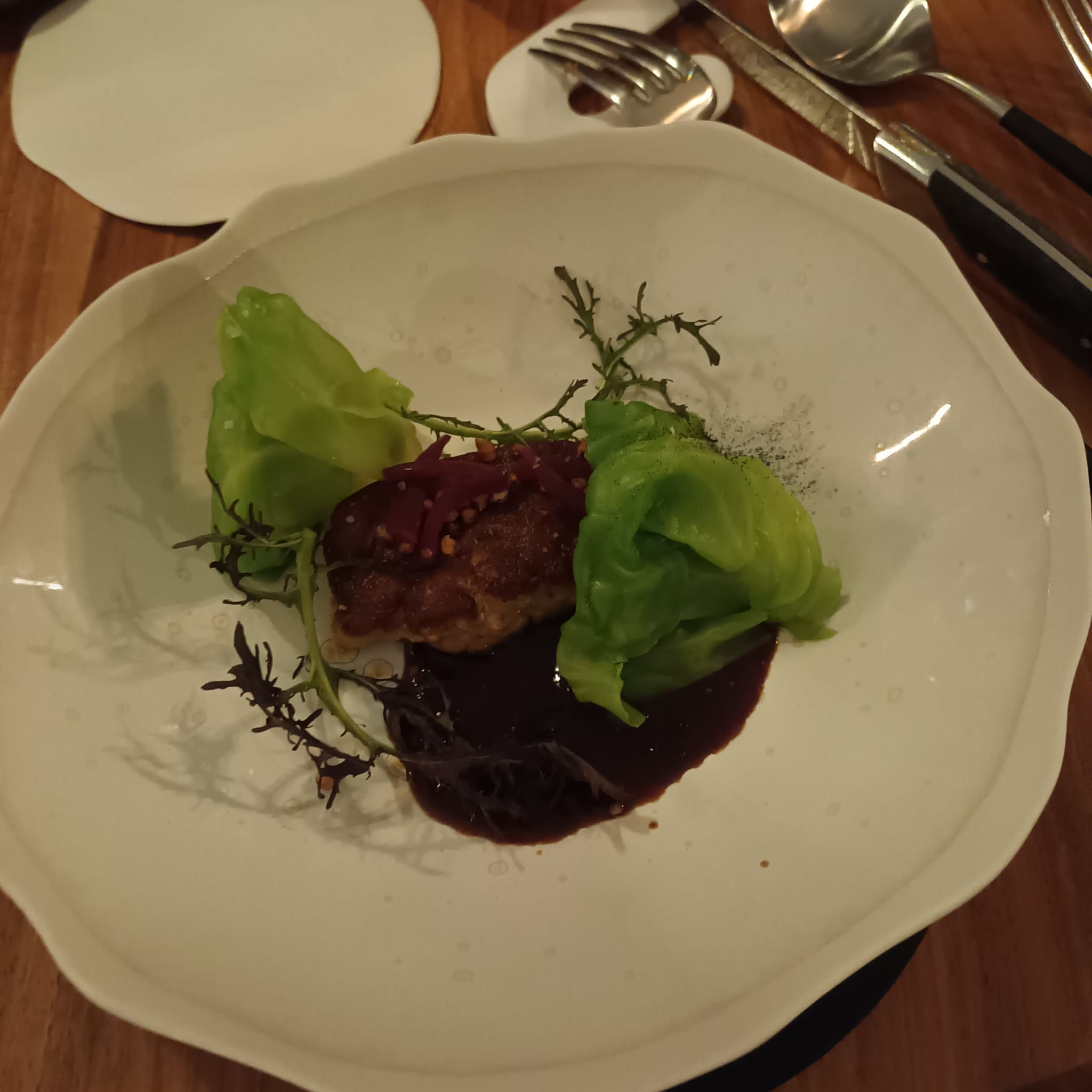 Luxe (mais sans prétention), calme, qualité et volupté. 1ère expérience, mais certainement pas la derniere. Cadre très agréable, mobilier et vaisselle en accord total avec le lieu et la cuisine Service à la fois attentif, réactif et néanmoins discret Carte pleine de jolies et délicieuses découvertes. À chaque plat, explosion (très savamment maîtrisée) de saveurs. Bref : réussite totale pour le dîner d’anniversaire de mon mari (avec une délicate attention à cette occasion) Avons envie d’y revenir