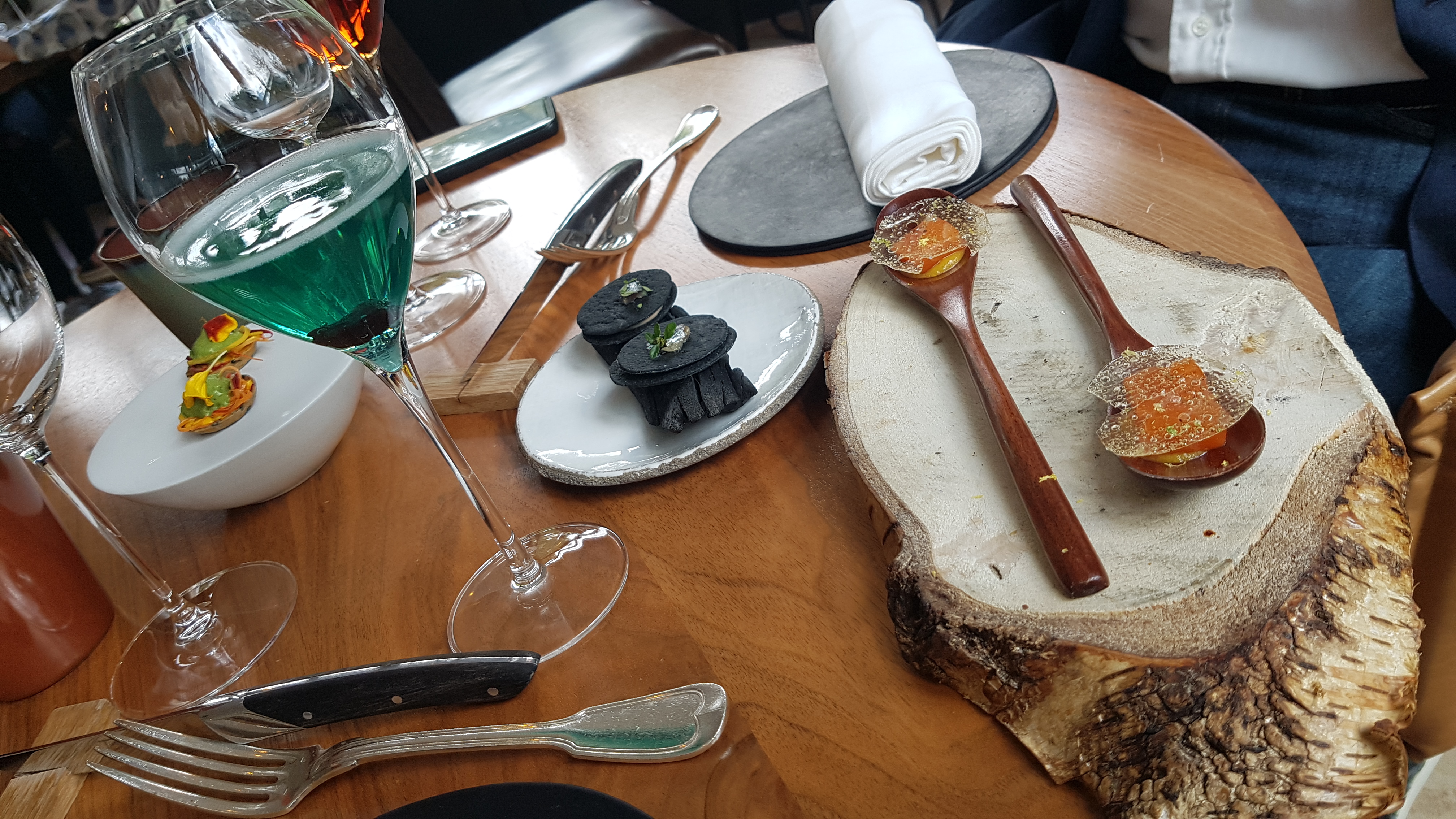 Original et de bonnes surprises. Menu itinéraire, repas très aérien, léger avec beaucoup de saveurs. Cadre, déco et services excellent et attentionné. J'ai trouvé le plat chèvre trop sucré et manquant de consistance. L'addition est un peu élevé surtout pour le champagne et les vins.