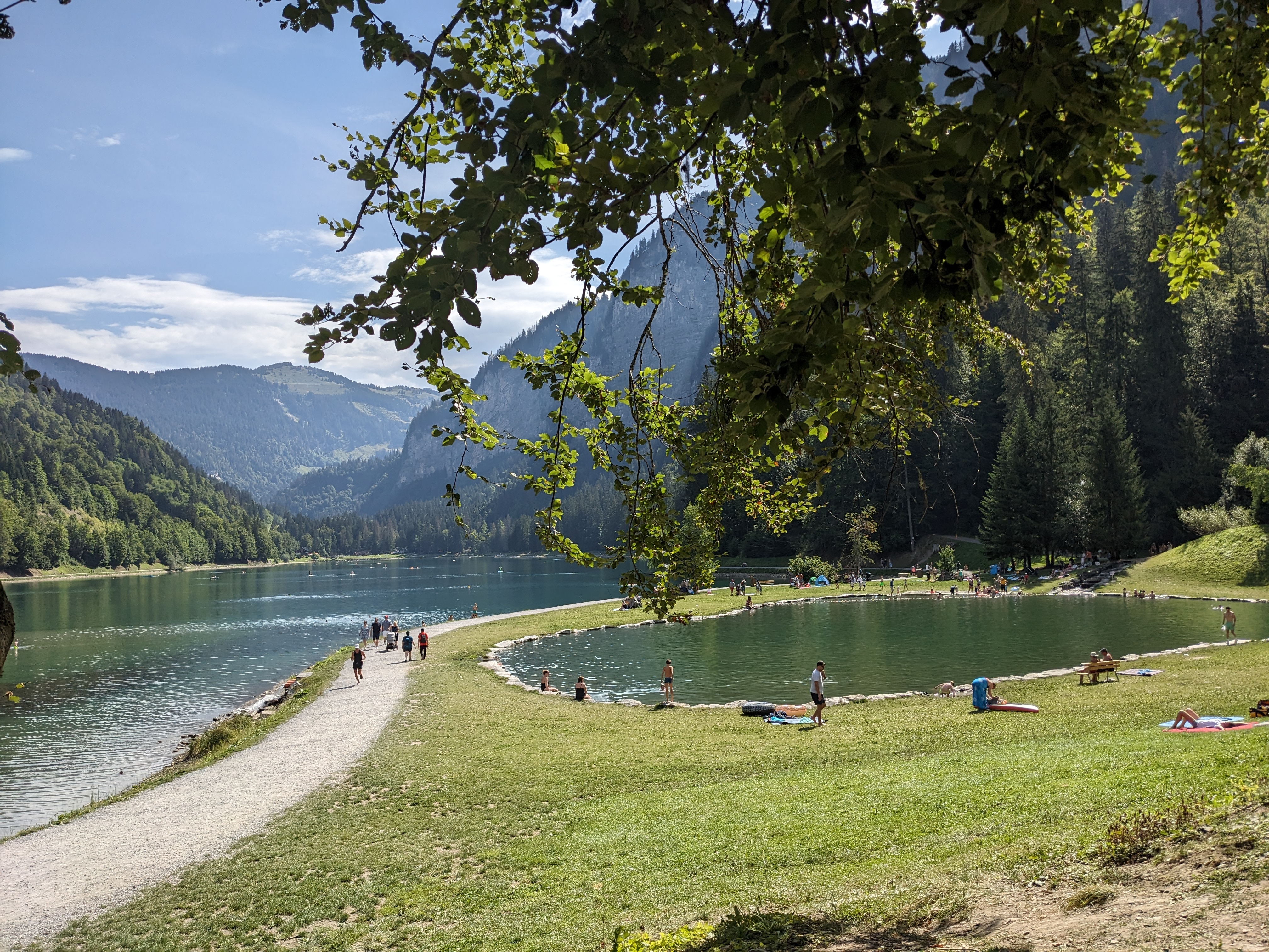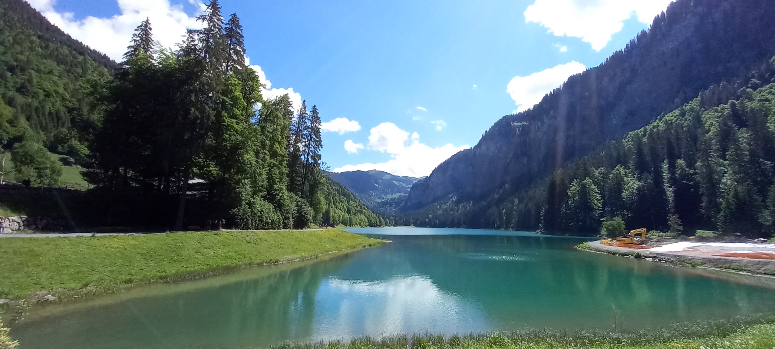 Une superbe terrasse au bord du lac de montriond. Une vue magnifique surplombant celui-ci. On pourrait y rester des heures à boire un spritz et se détendre en regardant le lac chargé de belles couleurs bleues vertes et turquoises
