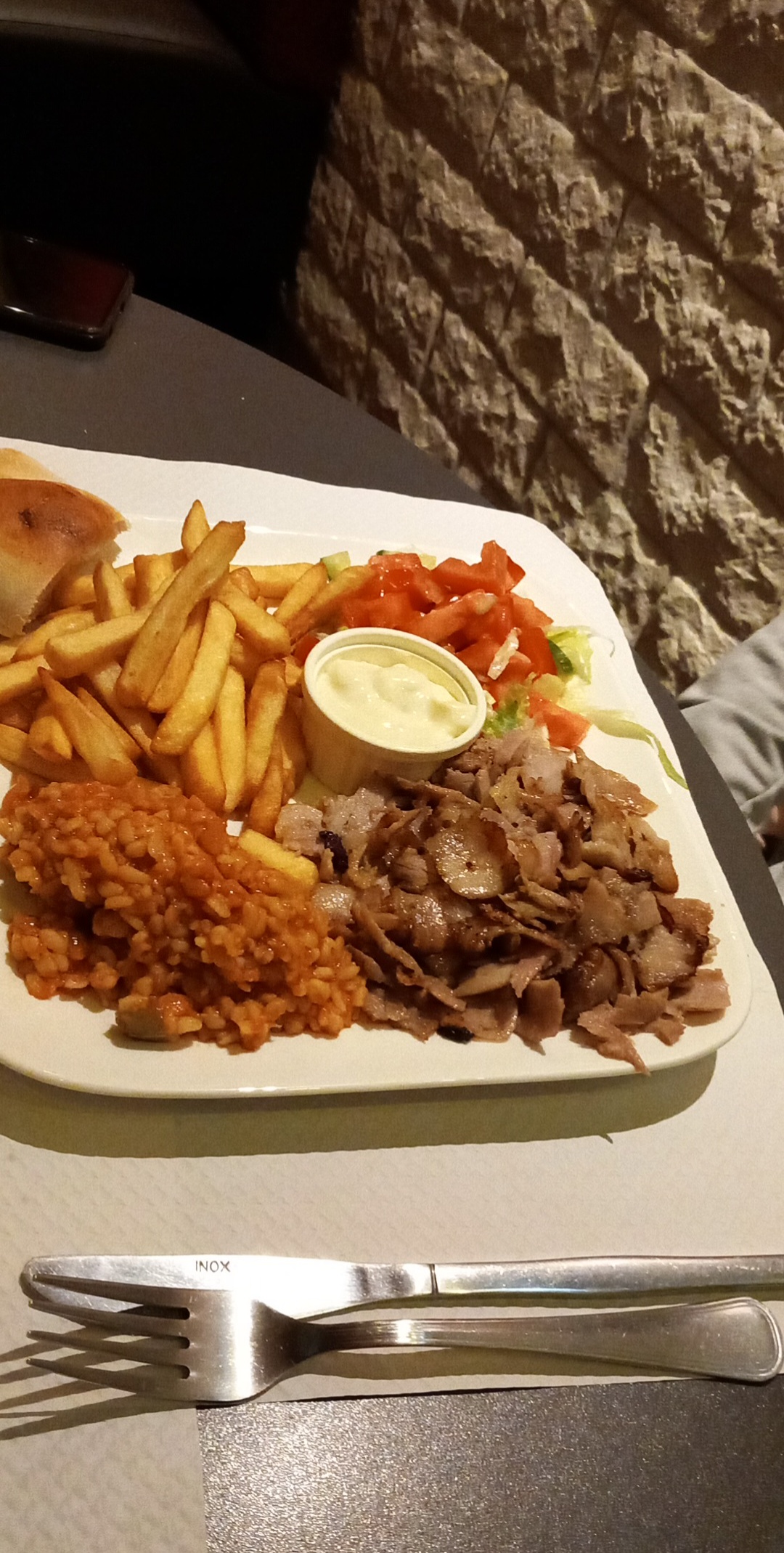 Accueil très sympathique, nous avons bien mangé, kebab classique mais tout était correcte, les frites croustillantes a souhait 😃