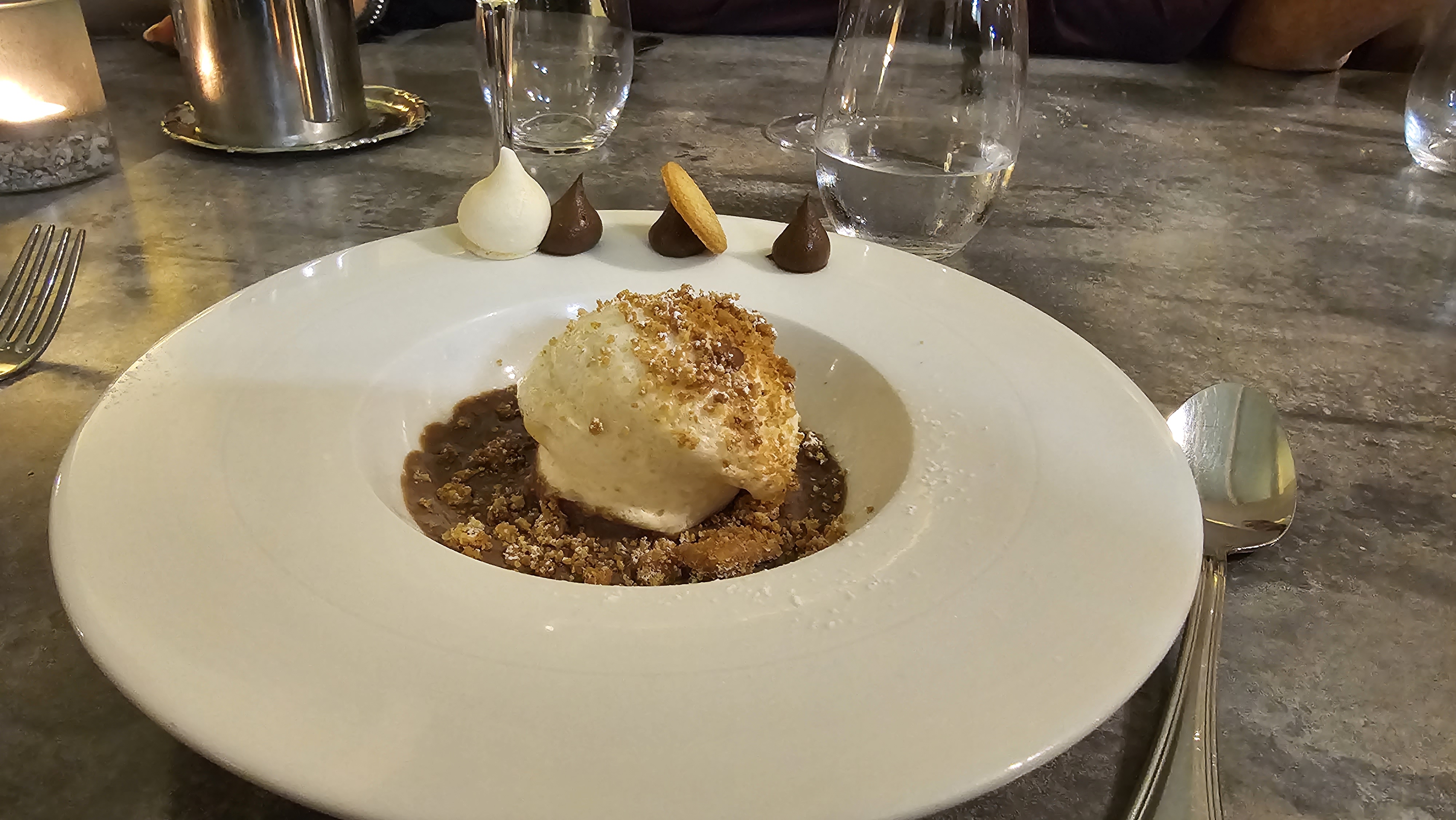 Dommage quand on demande une boule de glace et qu'on nous répond c'est pas possible le pâtissier n'est plus là... Le café et thé servis en plusieurs fois, par contre la cuisine c'est juste succulent rien a dire dessus, sa fond en bouche un régal....