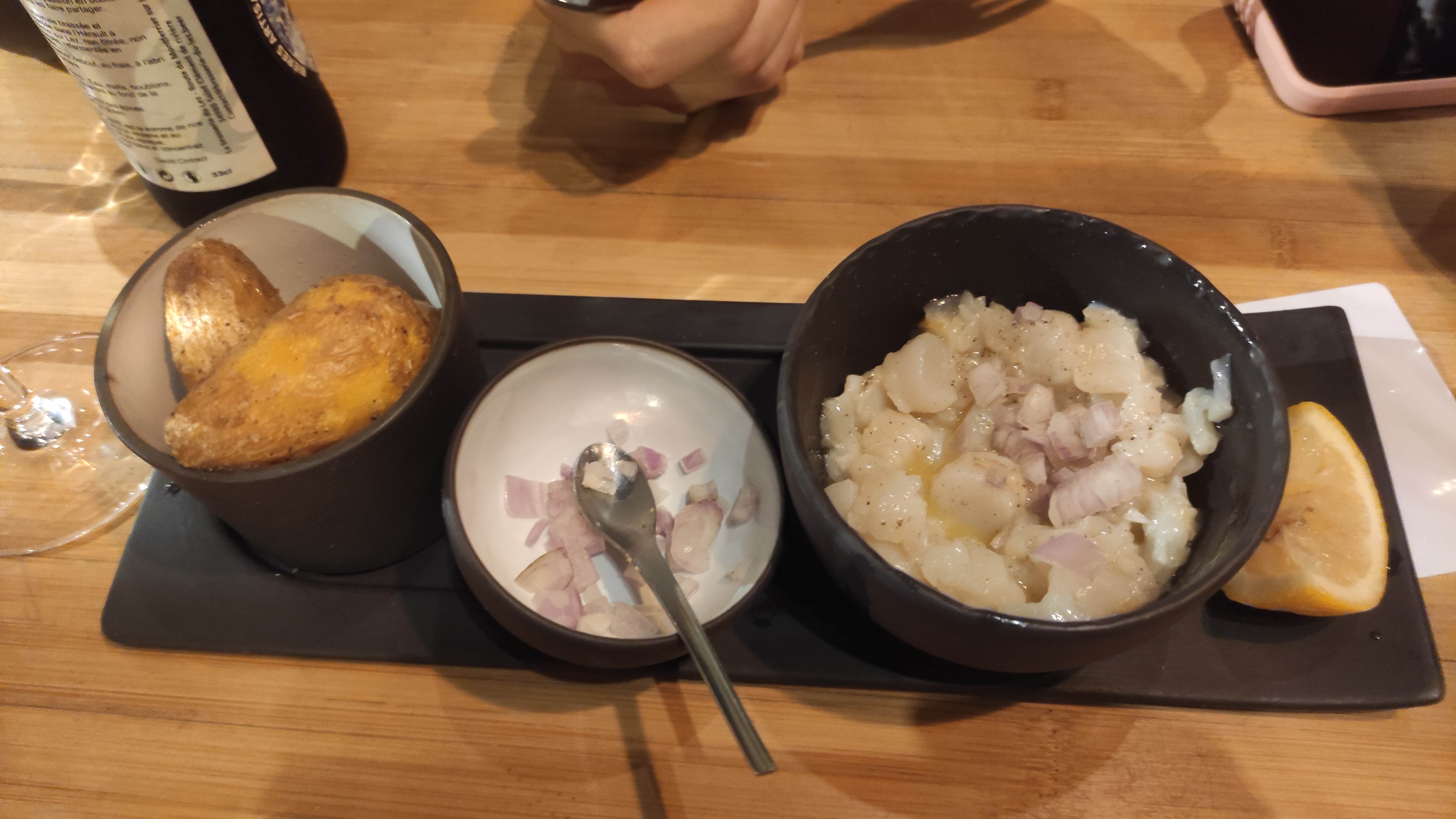 Serveur au top, très bons vins ! On a passé une bonne soirée. Niveau tapas : une préférence pour le tartare de st Jacques (mieux que le saumon) et les fromages, très bons. On y retournera, pour tester les plats en semaine et on écoutera le serveur qui nous avait proposé de rentrer nos trottinettes électriques. Donc pensez à vous mettre en terrasse même si vous avez un antivol (vol par plusieurs livreurs en scooter, en 3 minutes 😅) ou à prévenir le serveur si on vous demande si ça vous appartient.