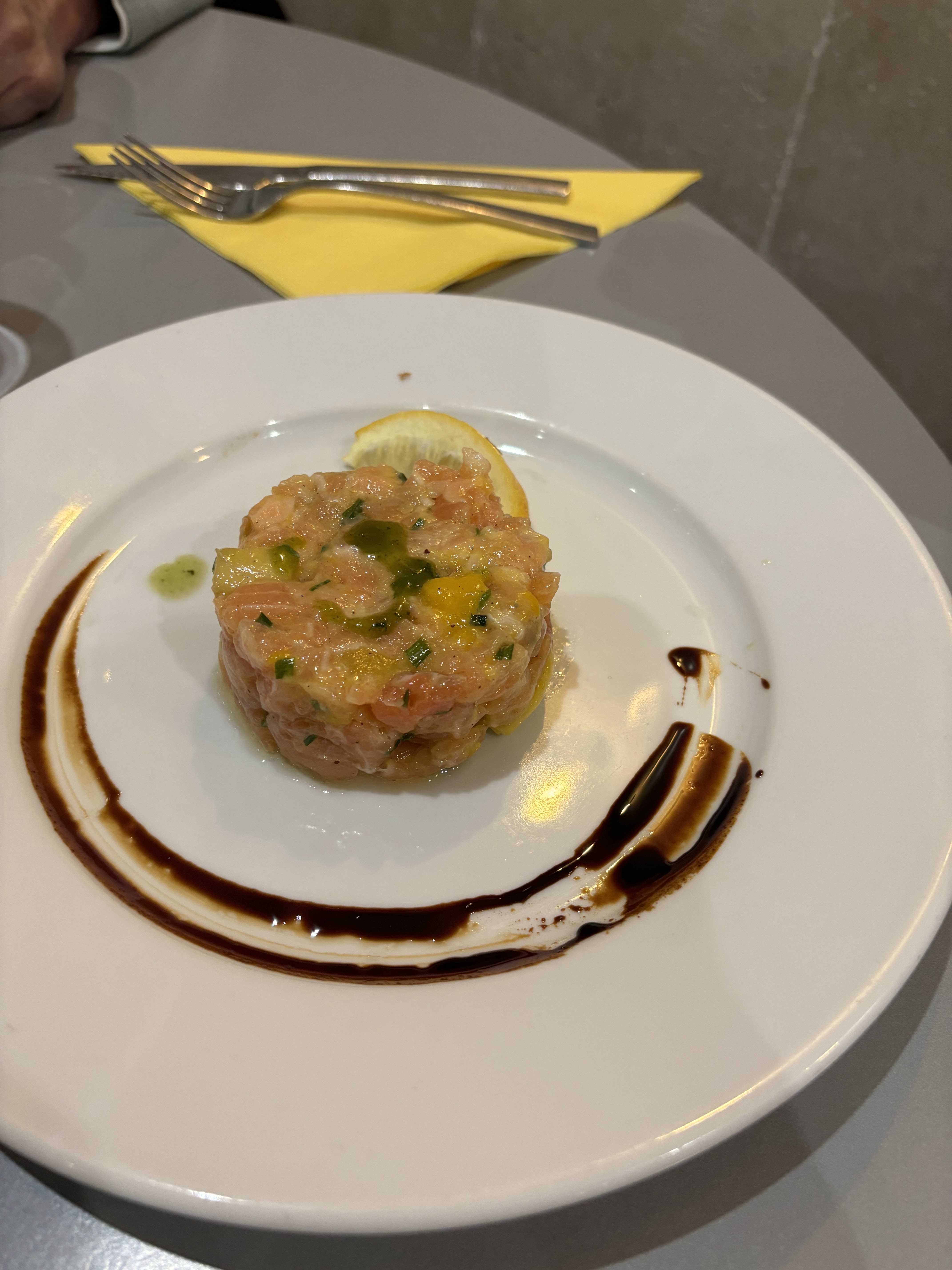 Très bon restaurant. Très bonne cuisine. Le tartare de saumon, une pure merveille et le rumsteck (Très tendre) sauce poivre vert super bon 👍