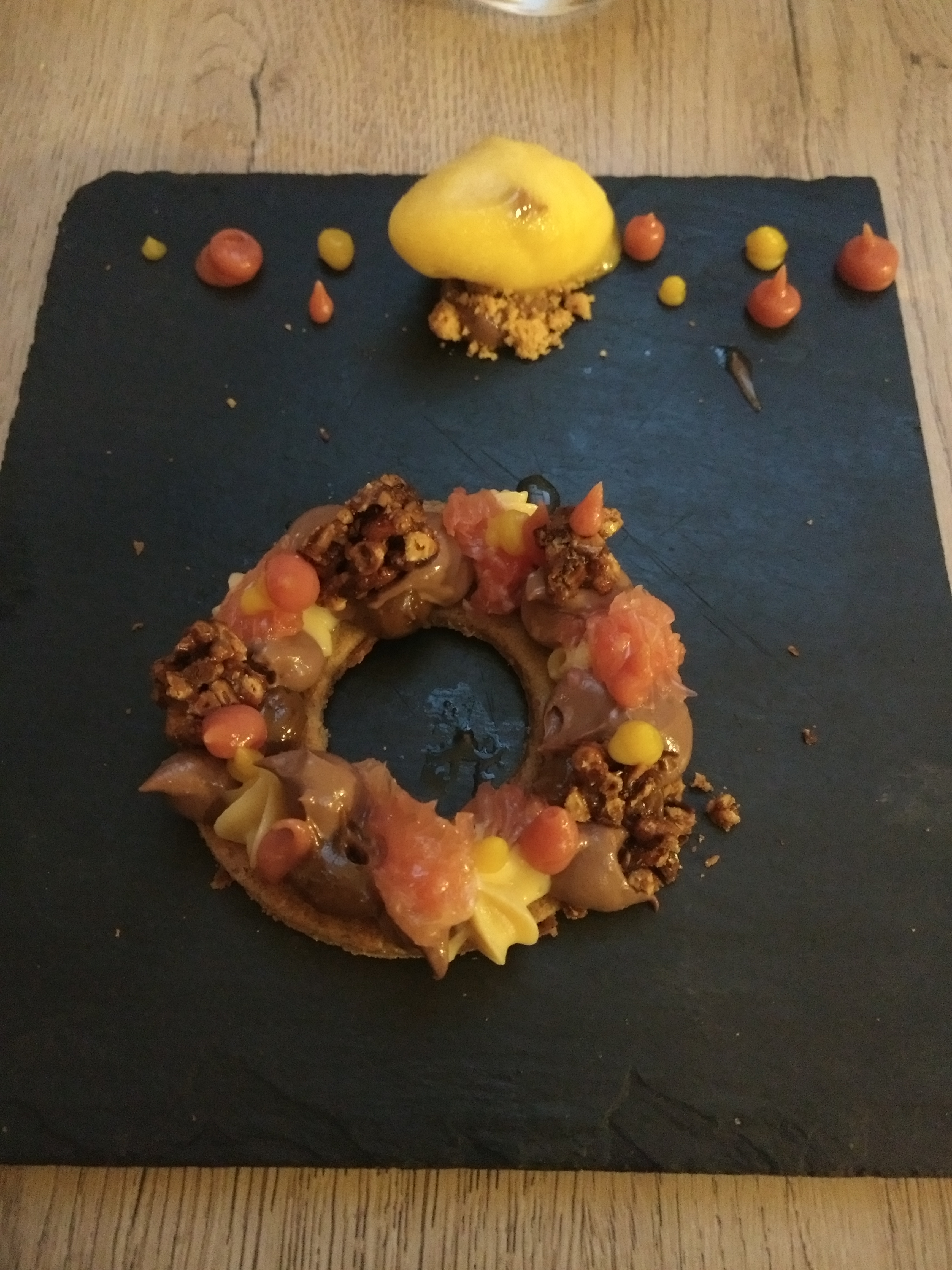Des goûts et des textures très travaillés, une originalité très gourmande, une belle découverte et un dessert en apothéose