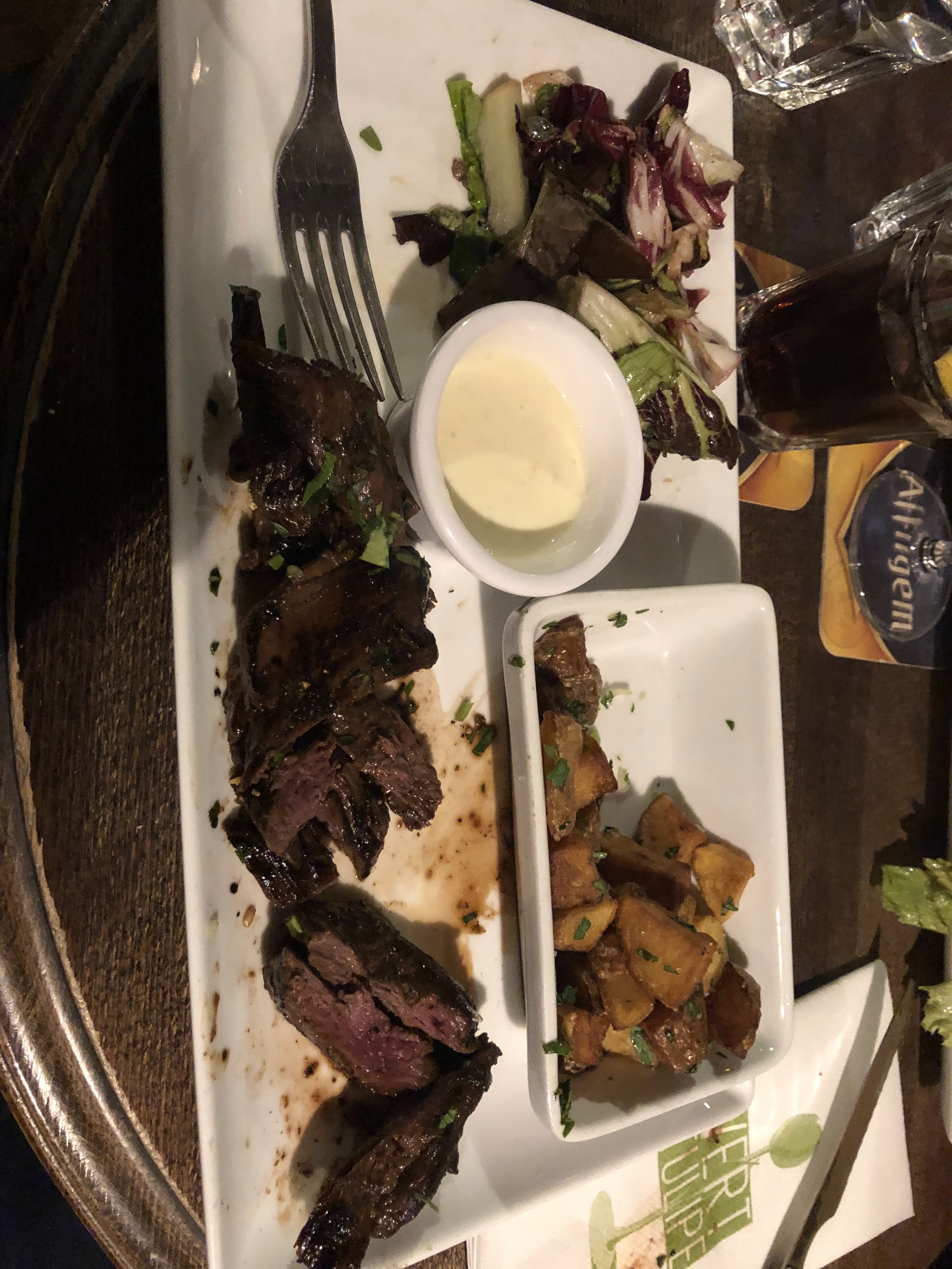 J'hésitais face aux critiques médiocres, mais je suis surpris de voir à quel point la nourriture était incroyable, tendre et savoureuse. Le service était bon et le serveur était prévenant. J'ai trouvé que le prix était bon, environ 16 € pour un plat de viande et de pommes de terre.