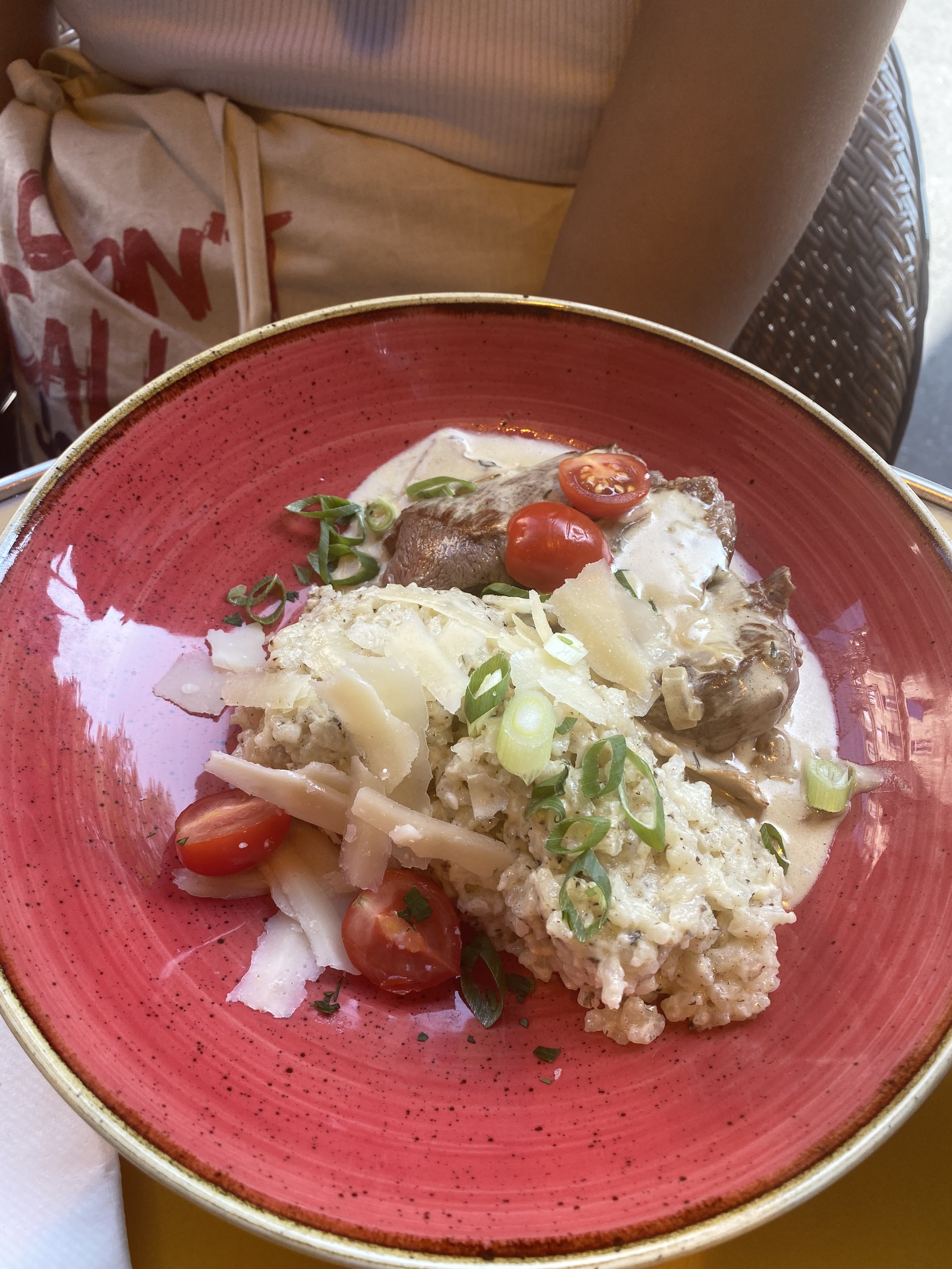 Nous avons attendu 45 minutes pour notre nourriture, les serveurs étaient très antipathiques et n'ont même pas dit qu'ils avaient oublié notre nourriture. J'ai eu un toast à l'avocat qui était correct mais trop cher pour 15€. Mon ami avait un « risotto » qui n’était pas vraiment un risotto, plutôt une paella. C'était aussi très peu de nourriture. Je ne le recommanderais certainement pas.