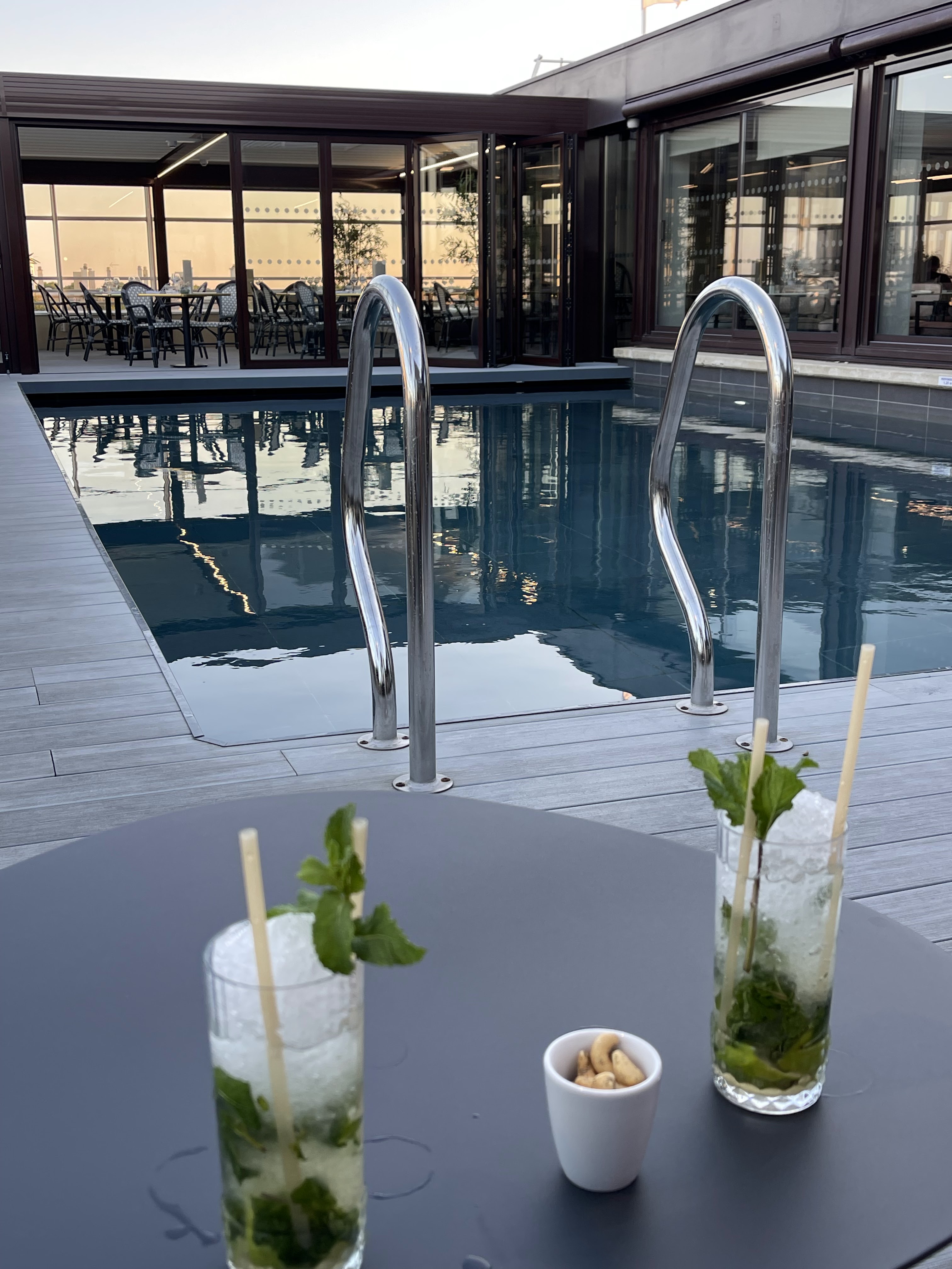 Le rooftop du Pullman est sympa. Pas de transats. Donc pas très pratique lorsque l’on sort de la piscine, elle-même un peu petite. Le service est irrégulier. Un peu en dilettante. Pas tout à fait à l’image de l’hôtel et notamment du staff à la réception qui est top. Y prendre le petit déjeuner est un bonheur !