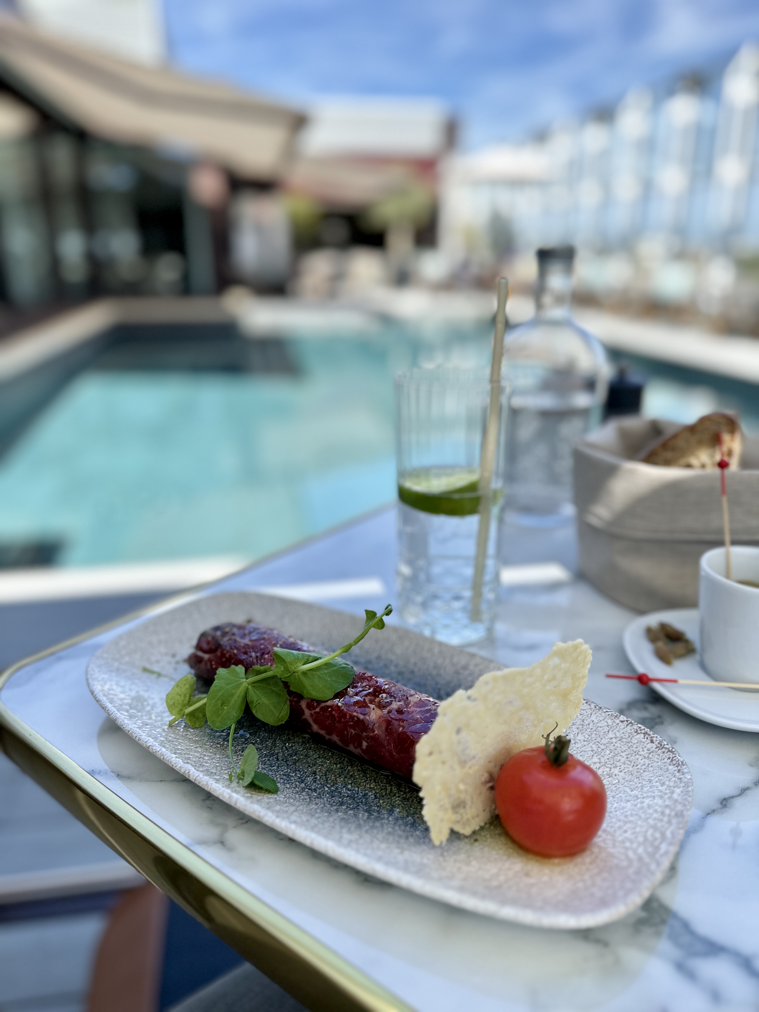 Expérience incroyable: produits frais, goûts exquis. Bonne ambiance avec la piscine, jolie vue. Merci aussi à notre serveur, Thomas qui a été top : serviable, aimable, drôle, fin connaisseur de vin. Merci à vous l'équipe ;) !