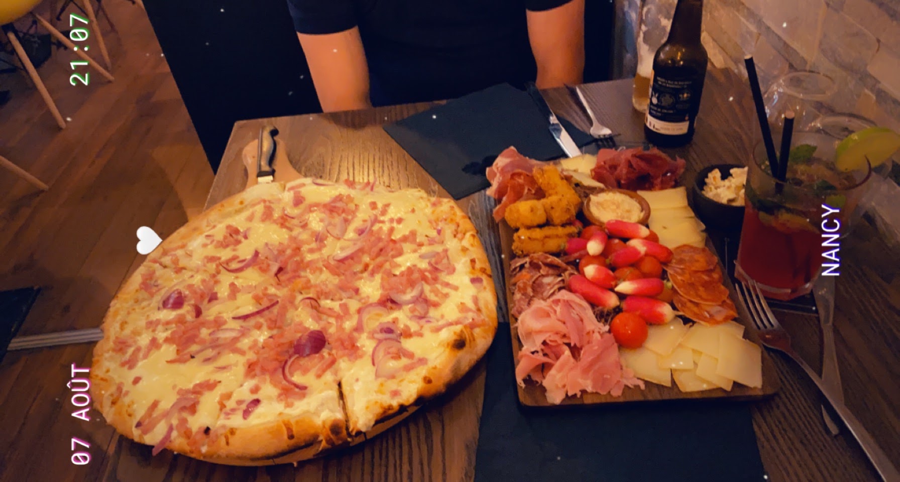 Serveuse sympathique. Restaurant proposant des planches et pizzas variées. Possibilité de personnaliser sa planche. C'était très convivial et je me suis régalée !