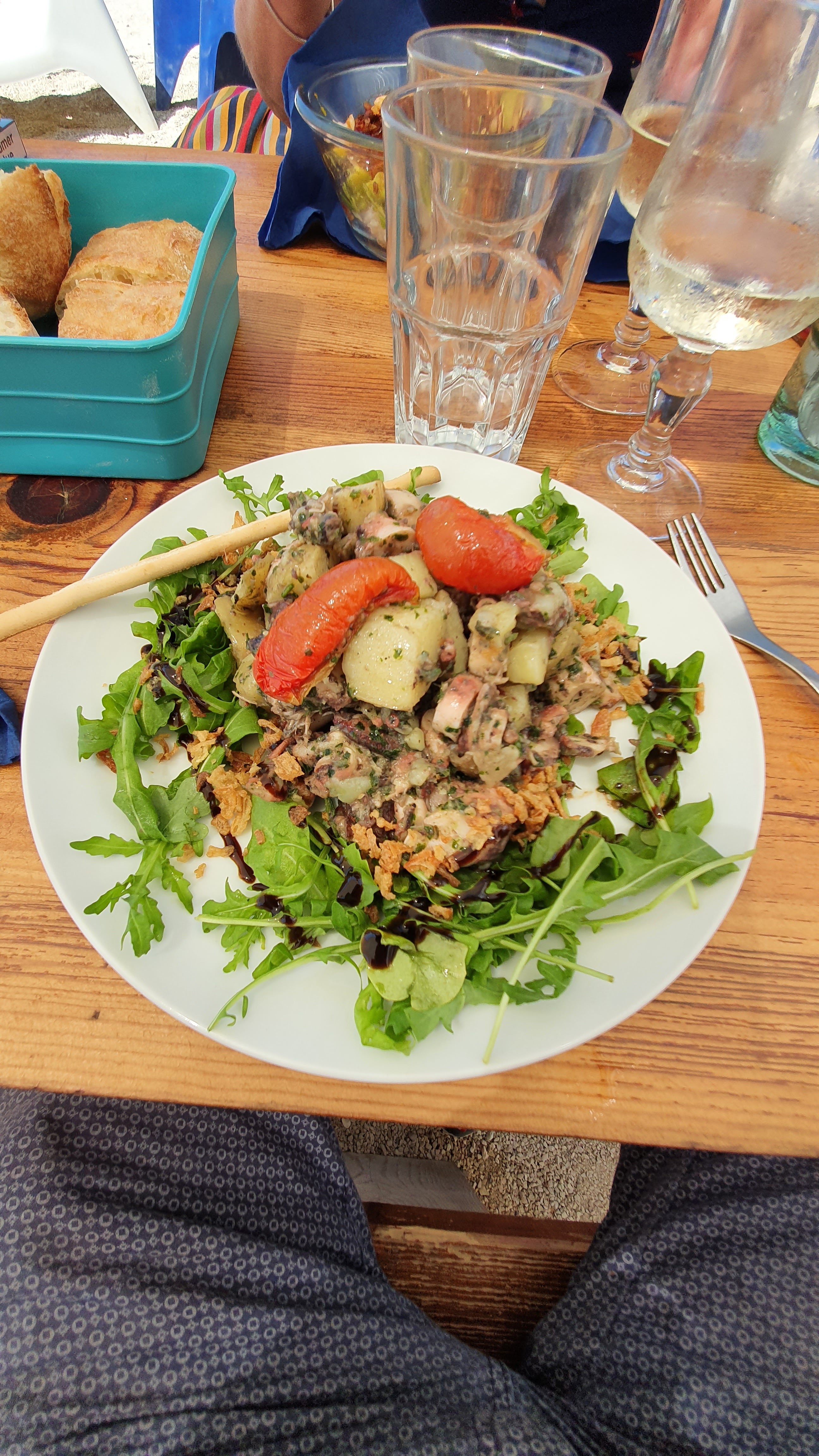 C'est bon (la brochette de poulpe à tomber par terre !!!. C'est copieux et bien présenté. Le cadre naturel autour est magique ! Et l'équipe est vraiment sympa. A tester sans hésiter C.