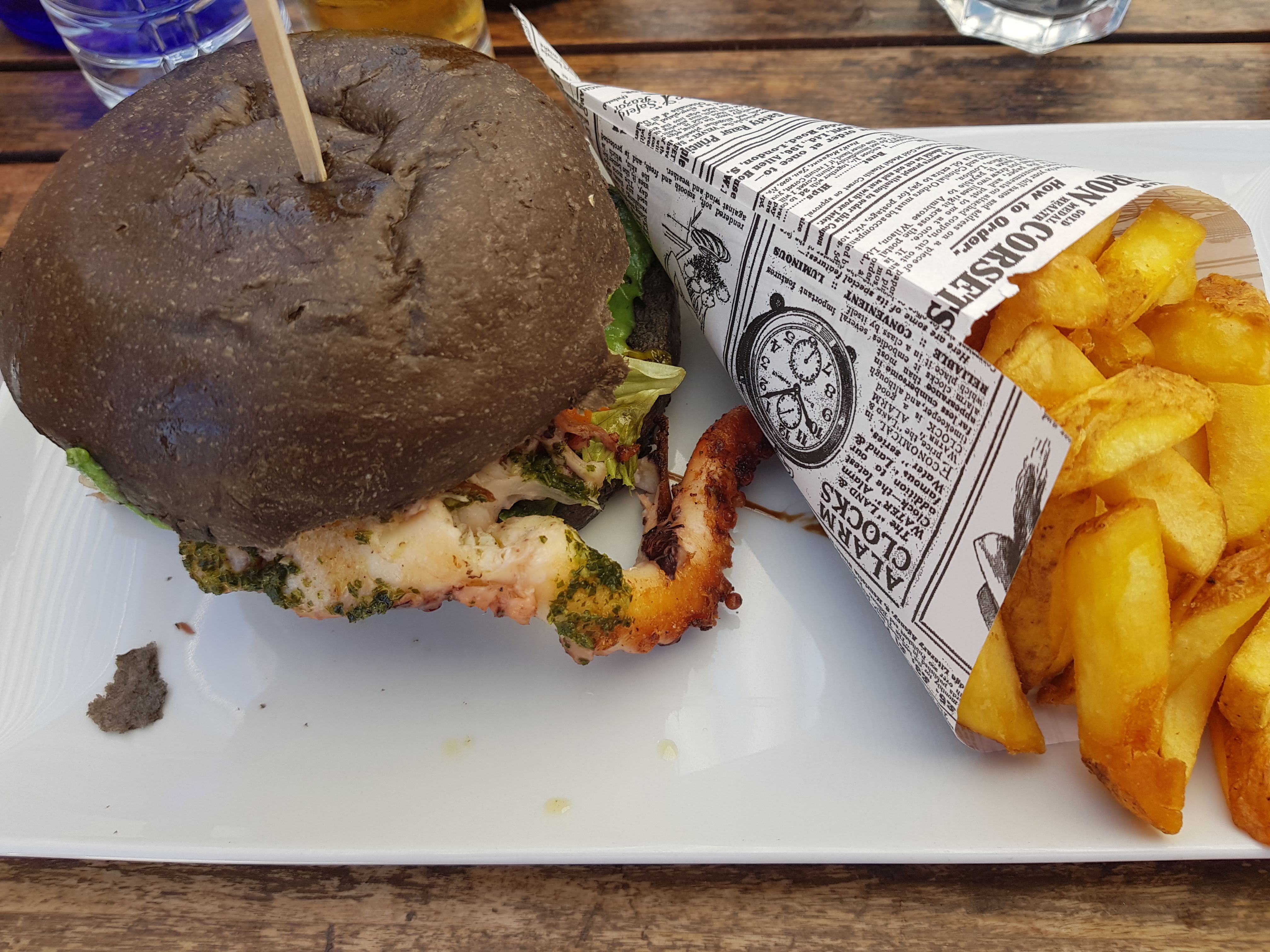 tres bien placé pour vue sur la mer le burger a l'encre avec un poulpe entier est un délice tarif correct a recommander
