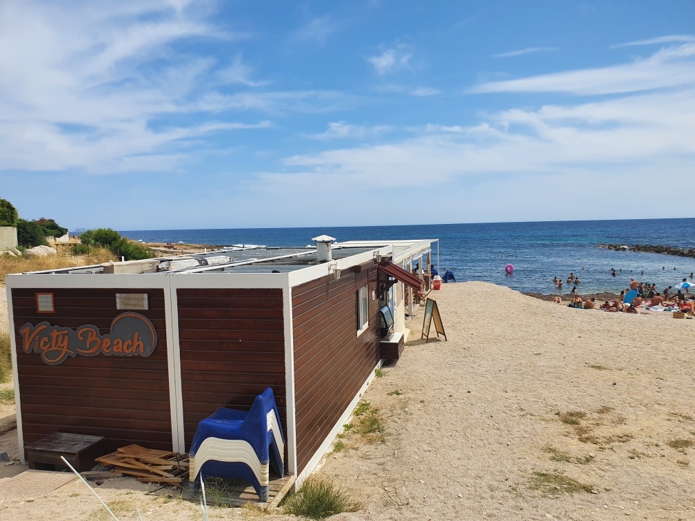 Nous allions chaque année au Victy Beach. C était notre dernière fois...Situation sympa. Les enfants peuvent jouer sur le sable entre 2 plats. Les serveurs sont agréables. Mais hier nous sommes retournés : grande déception. La qualité a vraiment chuté. Personne n' a terminé son plat. Viande très grasse, filandreuse, salade en sachet très fade, oignons rings cramés, frites surgelées trop cuites, panisses bof ...poulpe et mojito bons par contre. Très déçus!