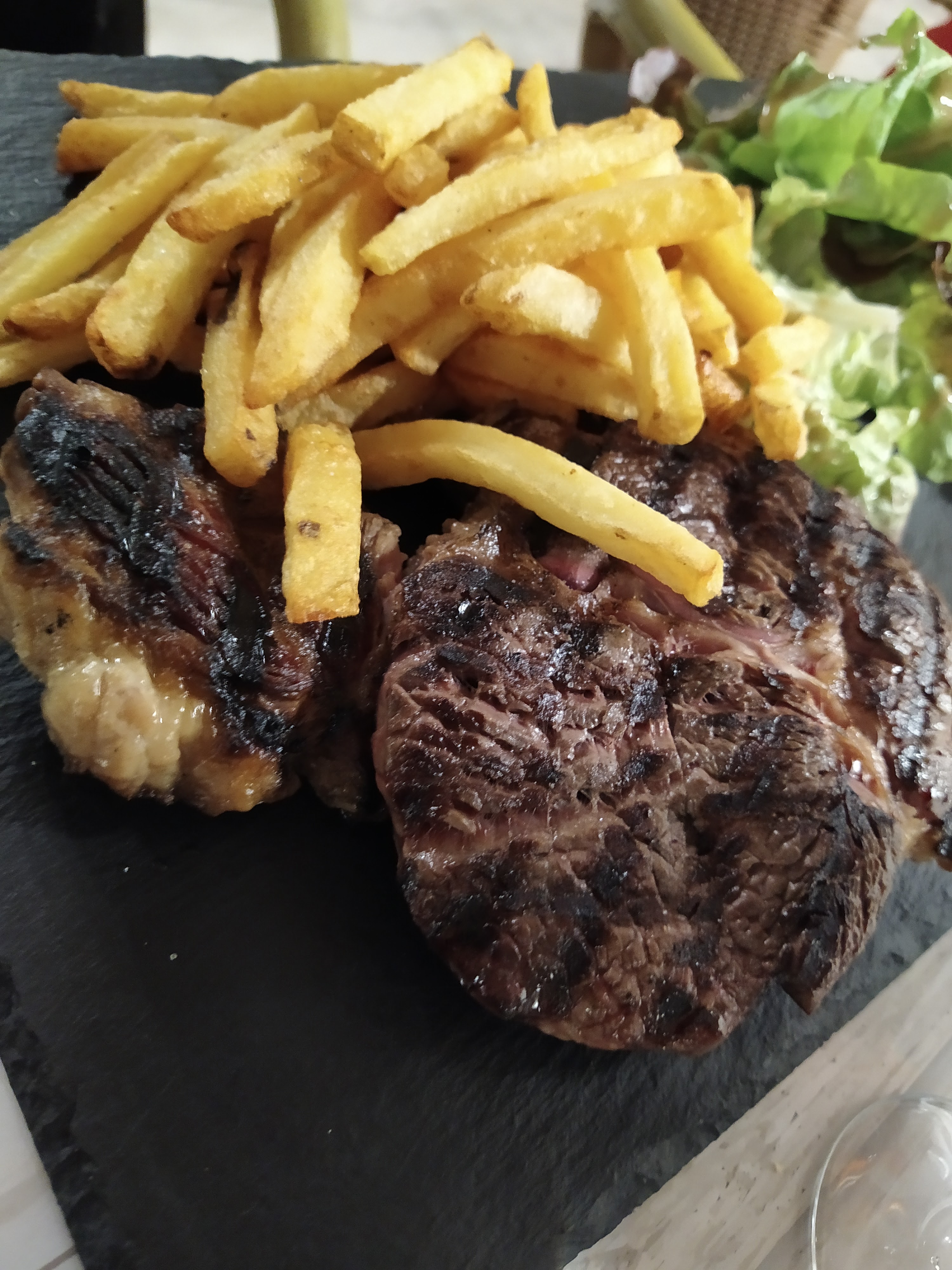 Le repas est copieux, mais tellement délicieux qu'on a tout fini. Frites maisons vraiment top et vuande savoureuse. Accueil et service avec le sourire.