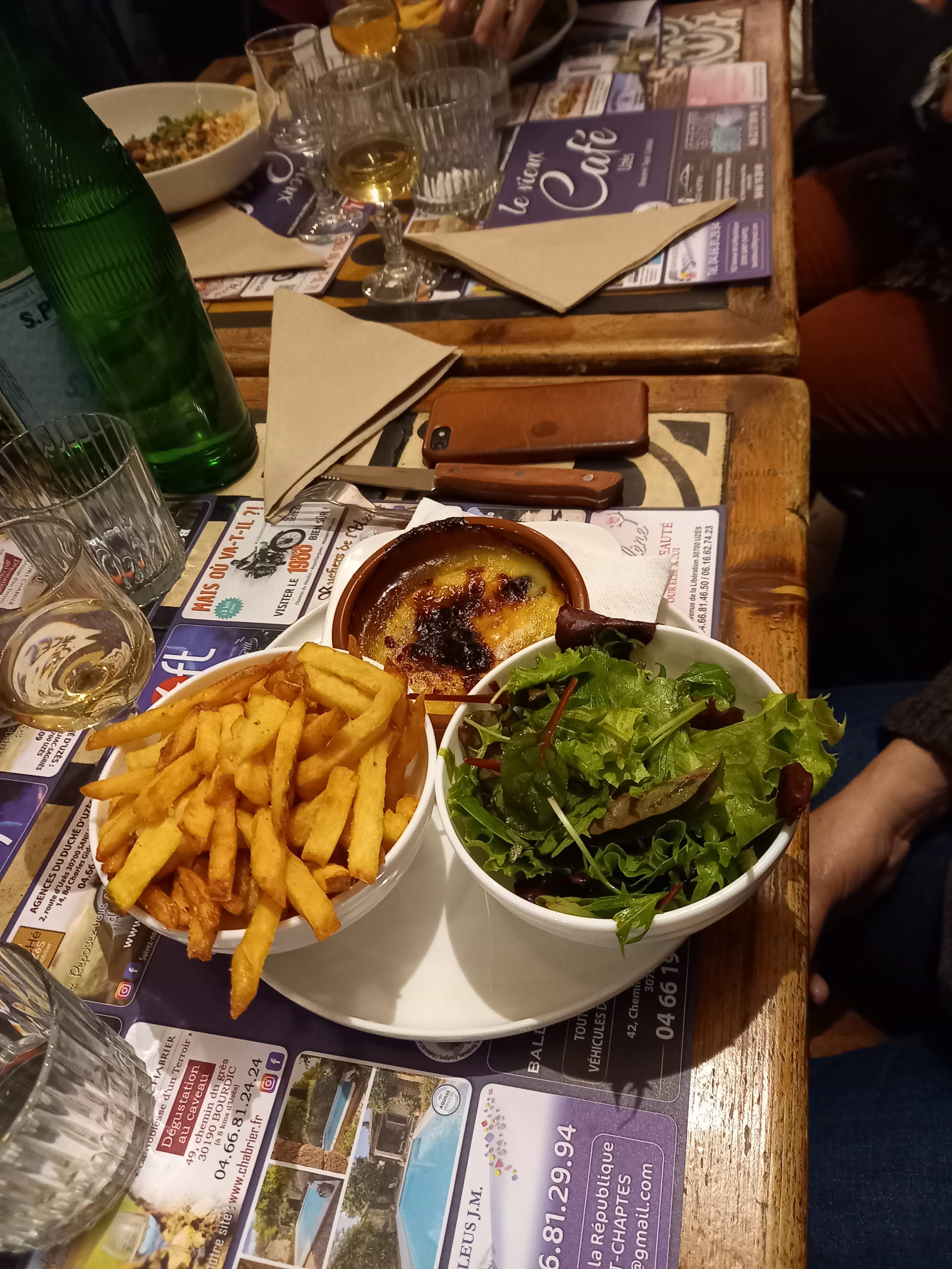 Super moment d'apéro/repas dans ce café mythique d'Uzès, on était parti pour l'apéro, mais aux vues de ce que les gens mangeaient on a prolongé ! Grand nous en a pris car l'on s'est régalés, on renouvelera! Des plats copieux et délicieux, bref rien à redire! Encore merci pour le service taquin et efficace ! 👌😉 Dur de trouver une table libre, un bon signe!