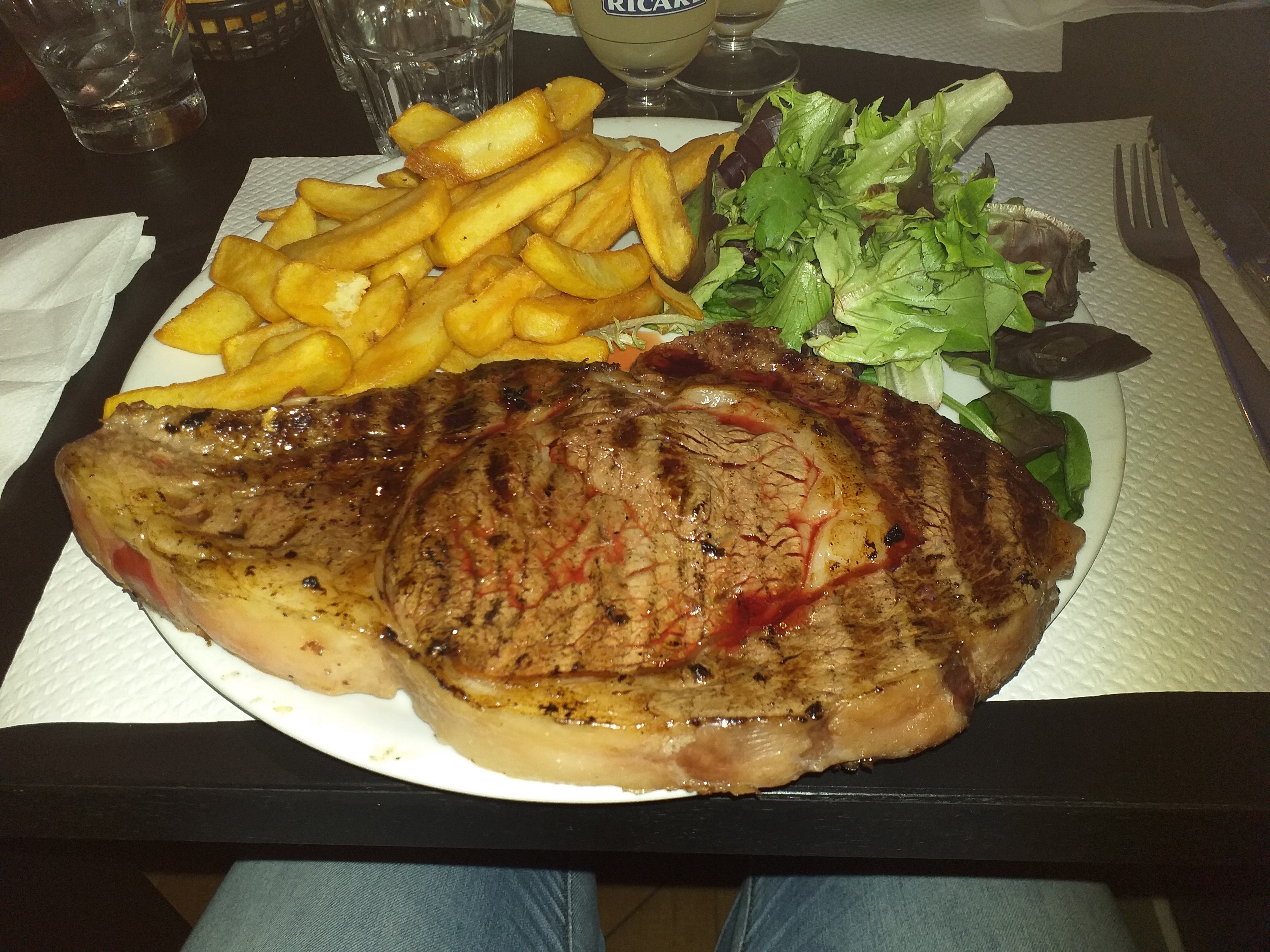 Bien mangé bonne qualité entrecôte frites et moules extra