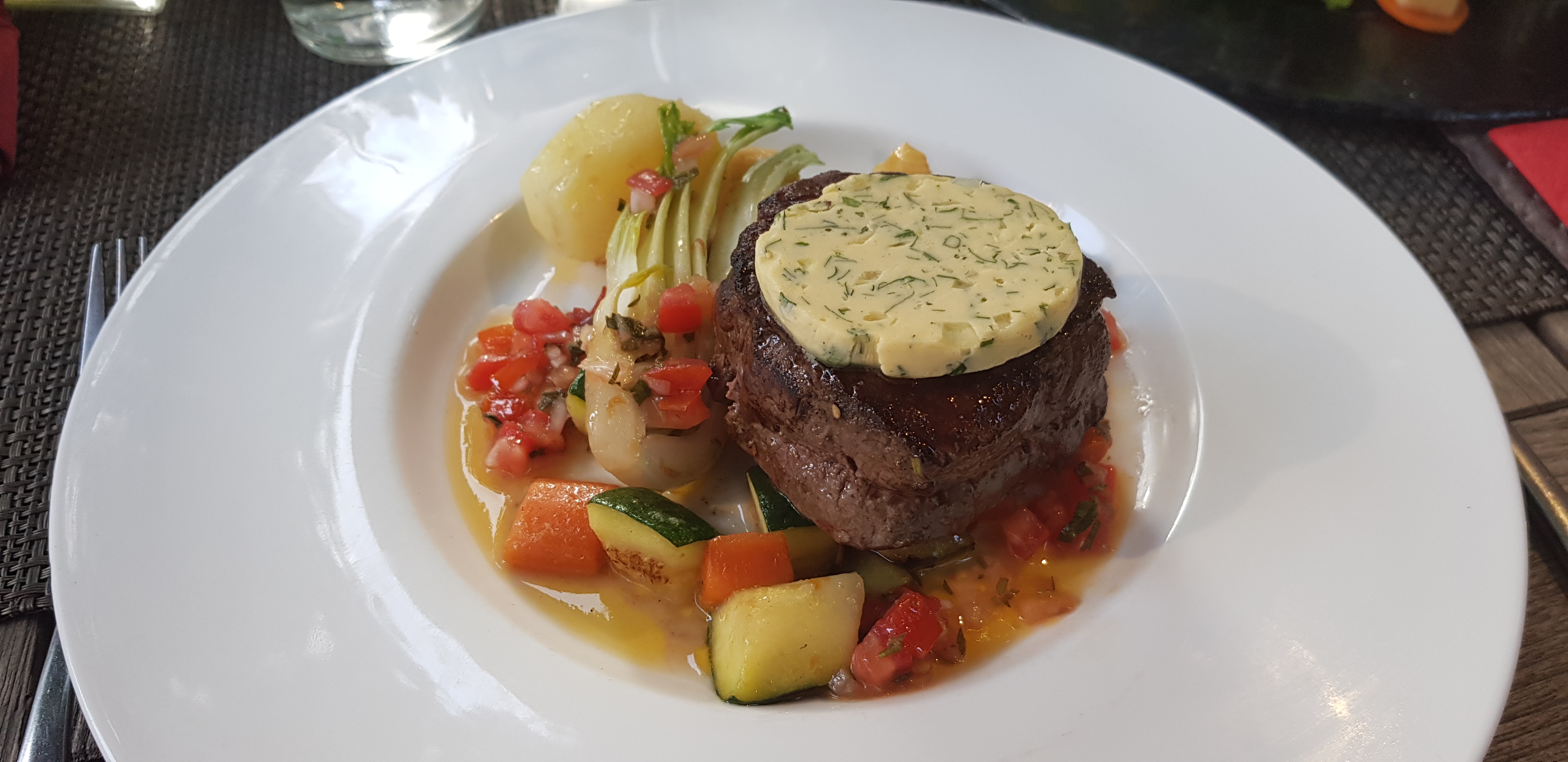 Très très bon, nous étions 4, 2 menus enfant avec filet mignon purée et 2 plats de thon mi cuit, juste un régal!!! Au top je recommande vivement!!!