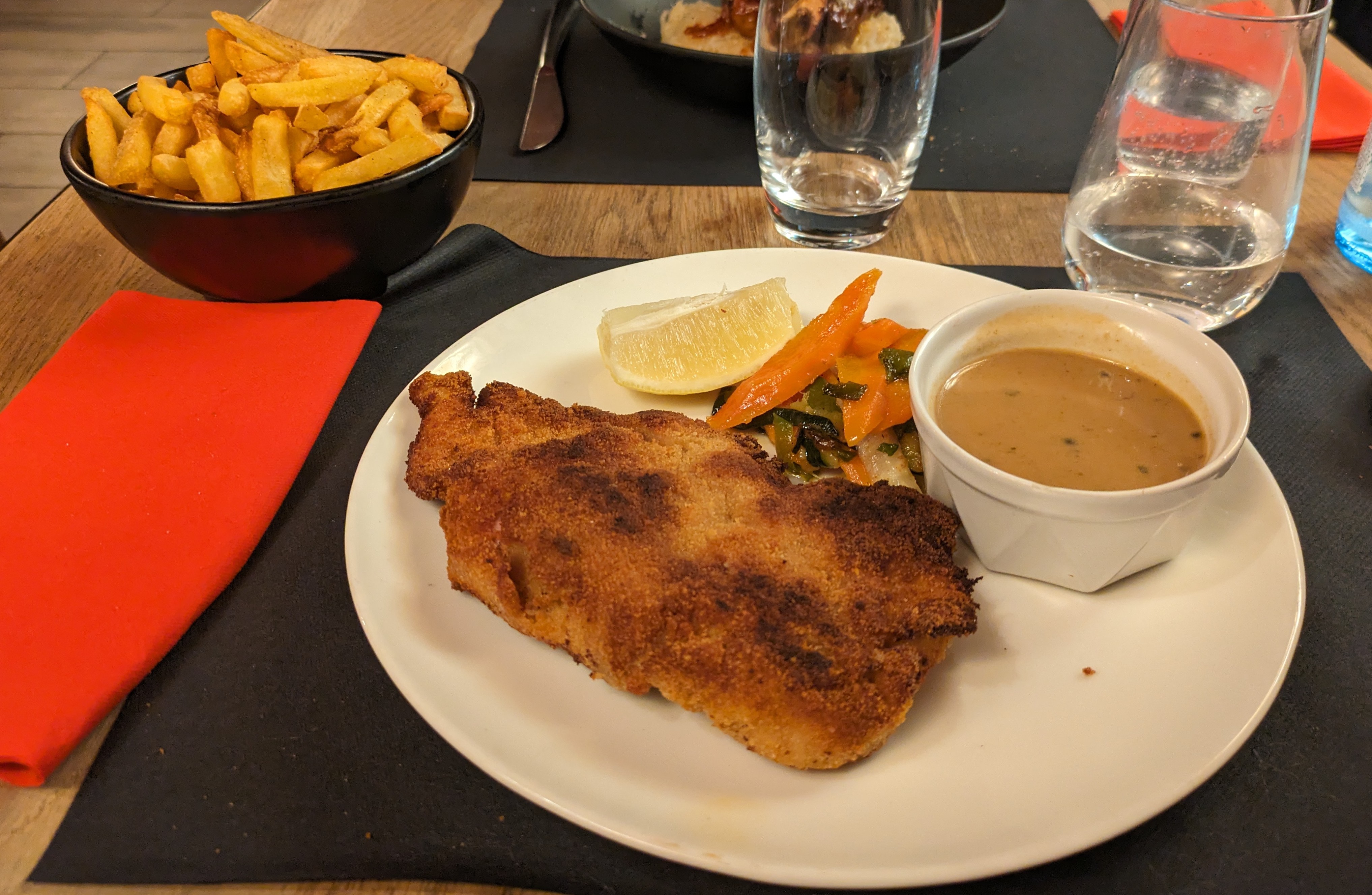 Très beau cordon bleu fait maison et ses spaetzles et légumes excellent 👌 je recommande se restaurant et la serveuse Edith trop sympa.