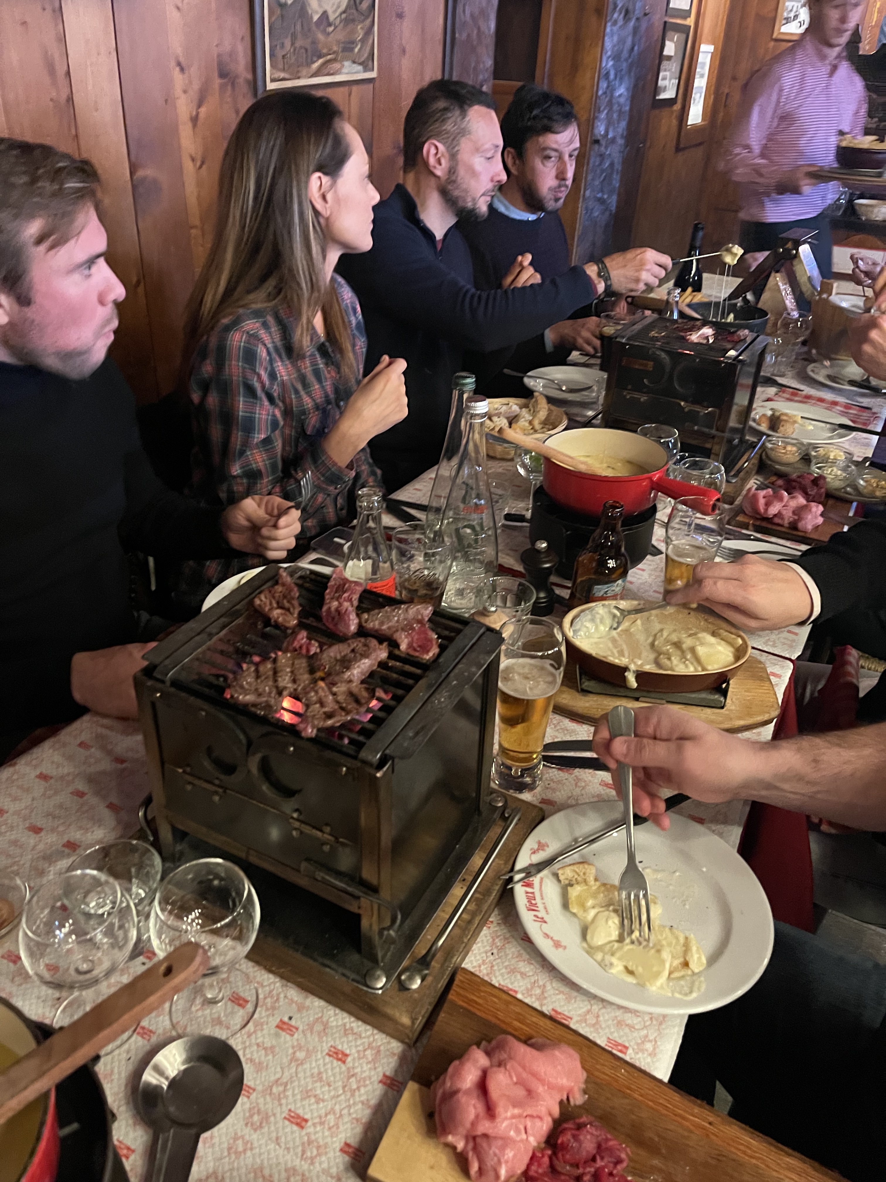 Incroyable expérience ! De passage avec nos cousins de Nottingham, nous avons passé un superbe moment au Vieux Megève. Raclette et brasérade copieuses et délicieuses, accord vin parfait et accueil vraiment très chaleureux ! Notre moment préféré, la chouette discussion de souvenirs britanniques avec Julian! Nous reviendrons très certainement 😉