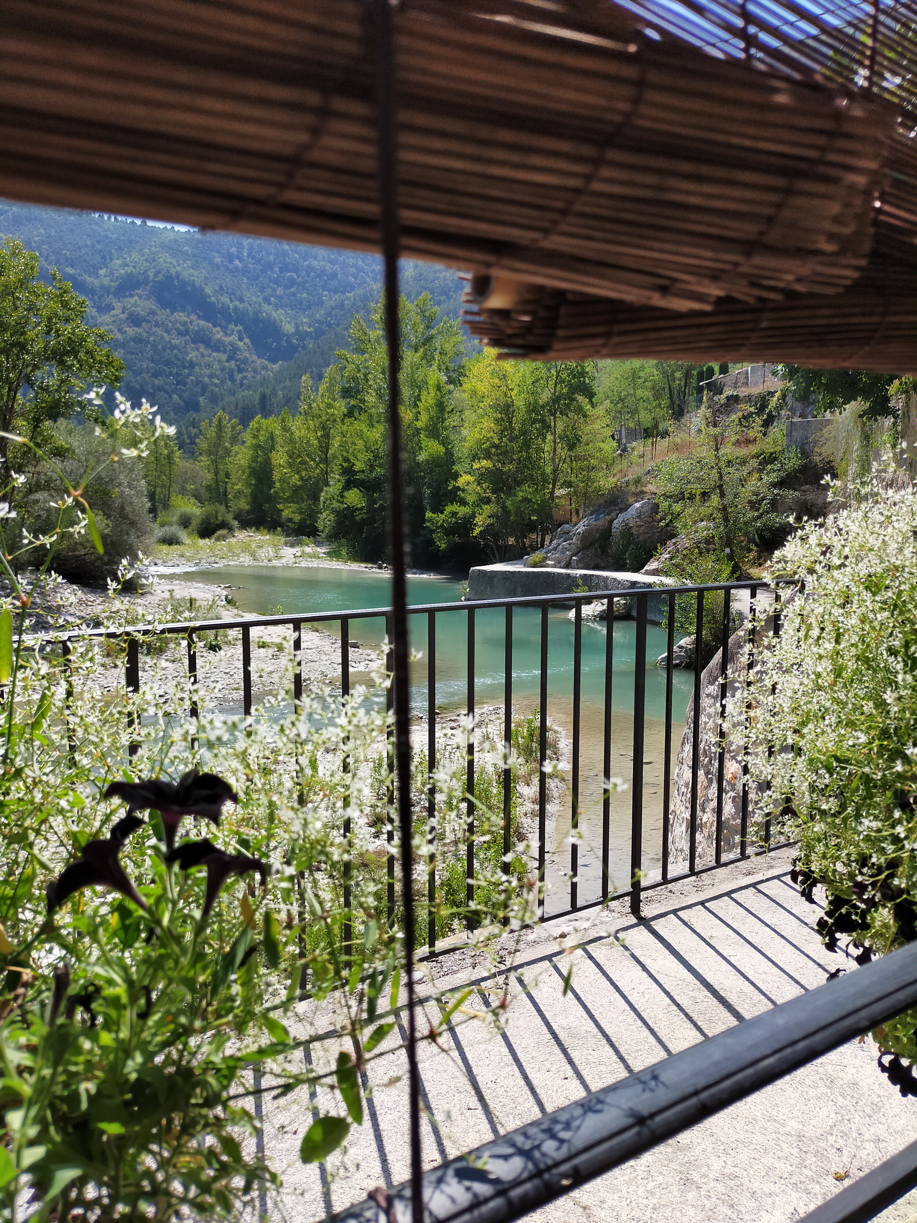 Un petit coin merveilleux entre deux montagnes juste au bord de la rivière qui vous accueille pour un repas gourmand avant un plongeon dans la rivière en contrebas. Un endroit et un accueil magique.