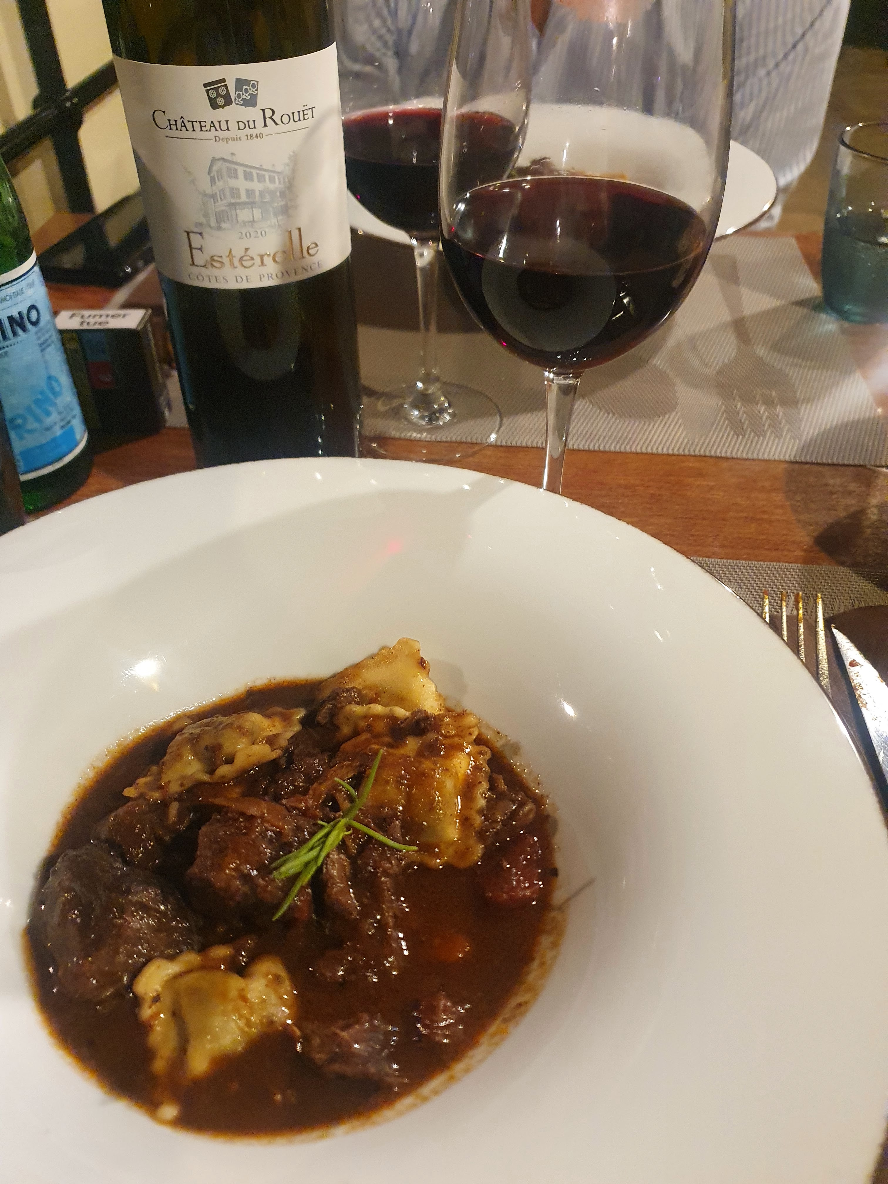 Une daube de joue de bœuf fondante dans un joli décor. Service un peu long et bouteilles d'eau hors de prix