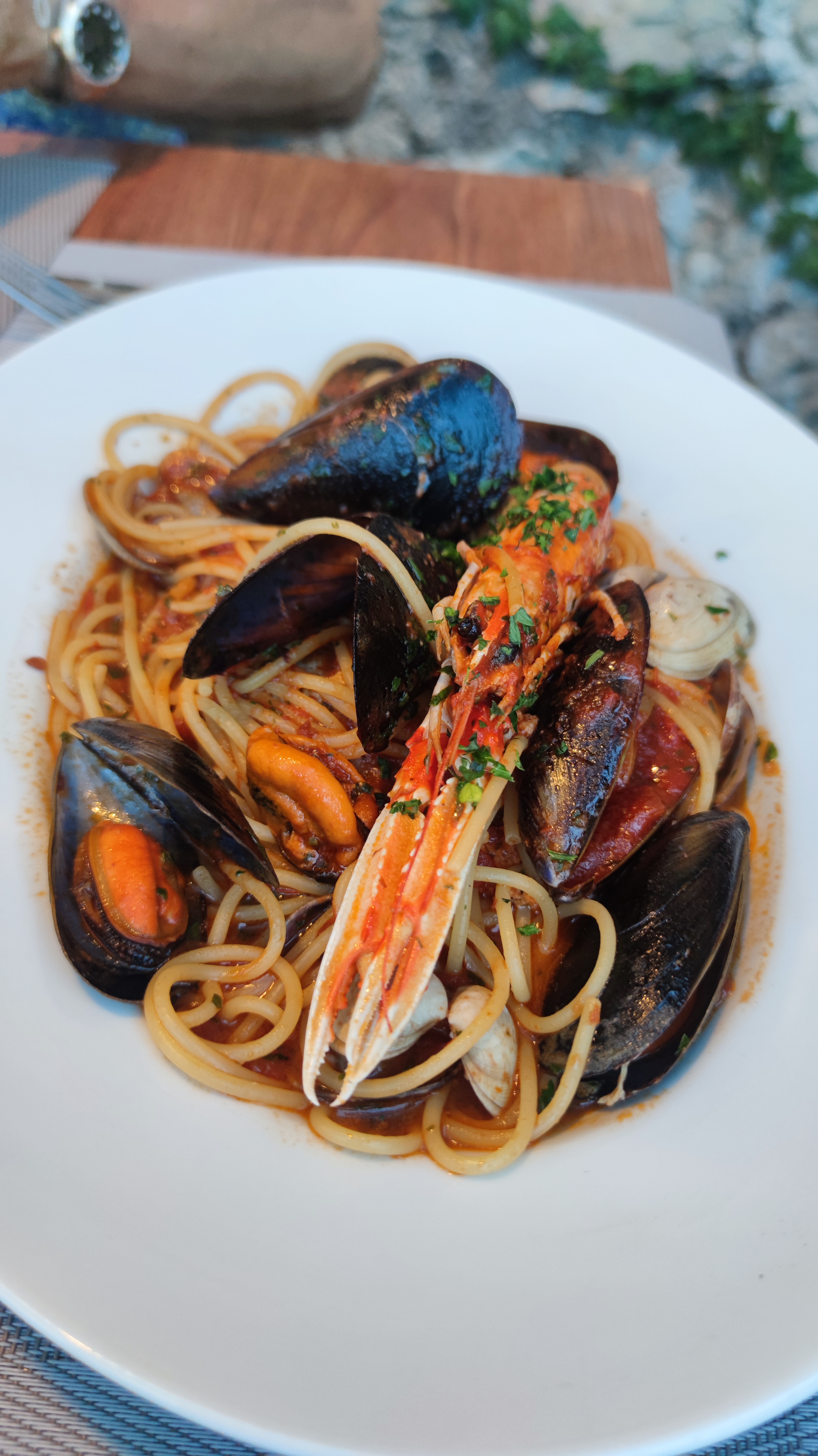 Spaghetti et risotto bon, le cadre est sympa, petit bémol le prix qui est un peu excessif pour ce qu’on mange problème que partage tous les autres restaurants de la ville